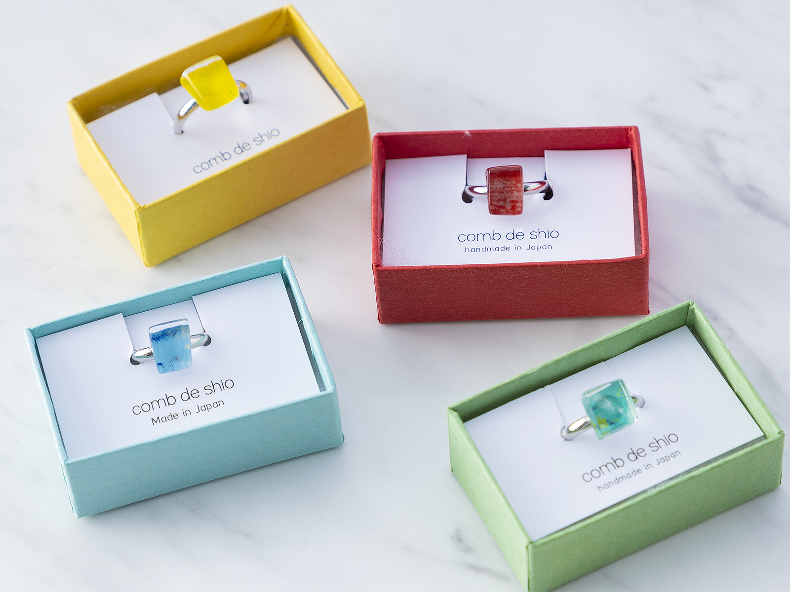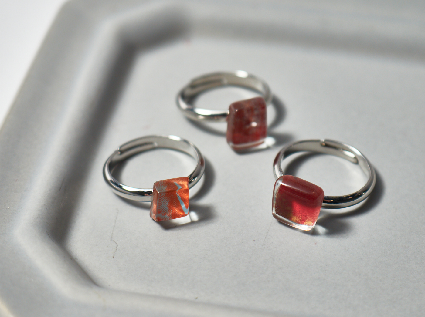 形も全て手作業でひとつひとつカットしてつくっており、あえて大きく色や形を異なったものを制作しています。 太陽の赤でも色々なイメージの赤があるように、一点ずつ異なった「太陽」が届きます。 ひとつとして同じ物がない、そんなおしゃれなアートリングは、自分へのご褒美・大切な方への贈り物にぴったり! 特別感溢れるリングをぜひプレゼントしましょう。
