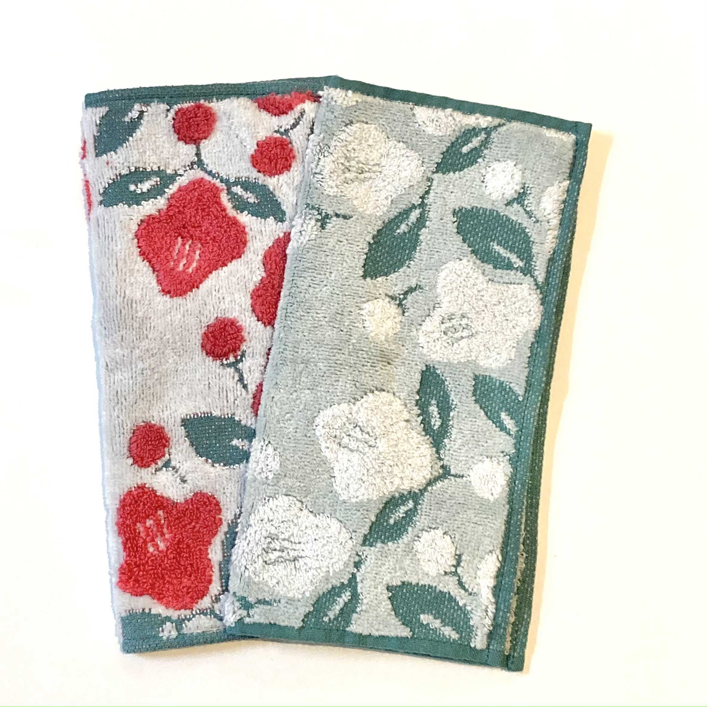 今治タオルの「伊織」さんのハンカチとコラボレーションしました。 肌触りの良いハンカチです。椿の可愛いデザインです。