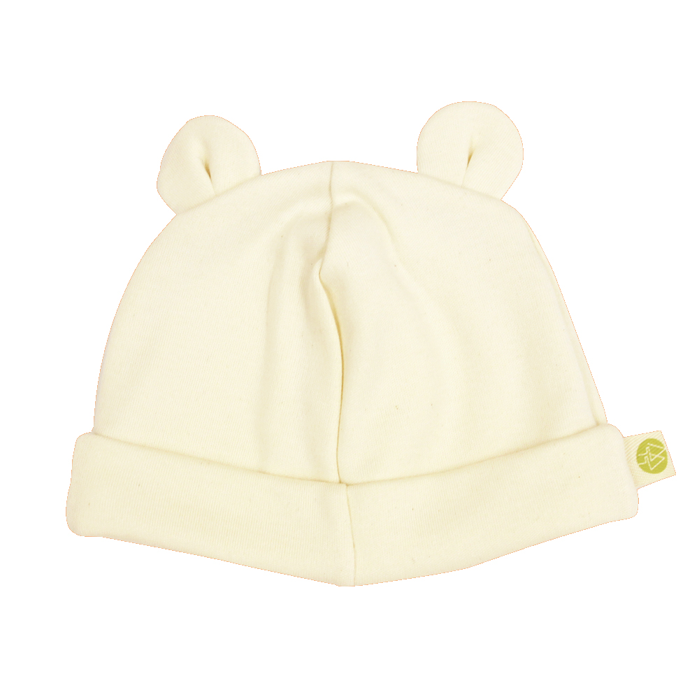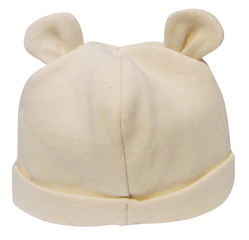 綿部分はオーガニックコットン100で敏感肌の赤ちゃんにも安心。 認証機関により認められたオーガニックコットンを使用し、漂白・染色などの化学処理を施さずに、天然のやわらかさと風合いを引き出しています。 くまさん帽子は、ネームを外側につけることにより赤ちゃんの肌にあたらないようになっています。