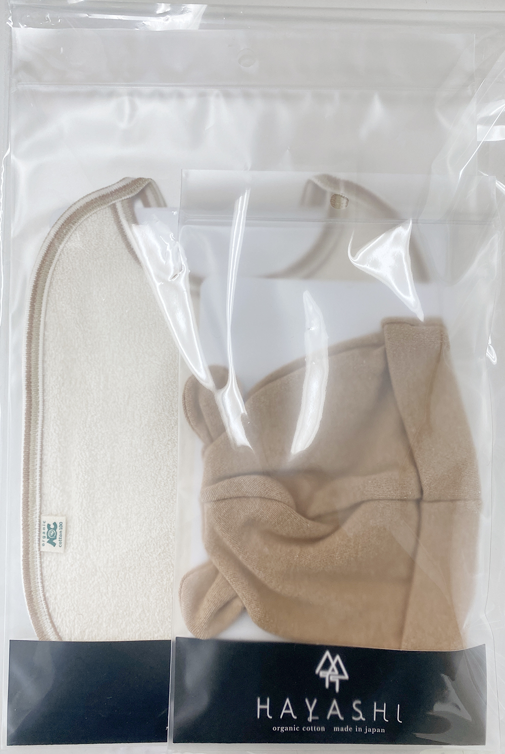あんしん、こだわり、日本製のオーガニックコットン【HAYASHI】の帽子・スタイセット。