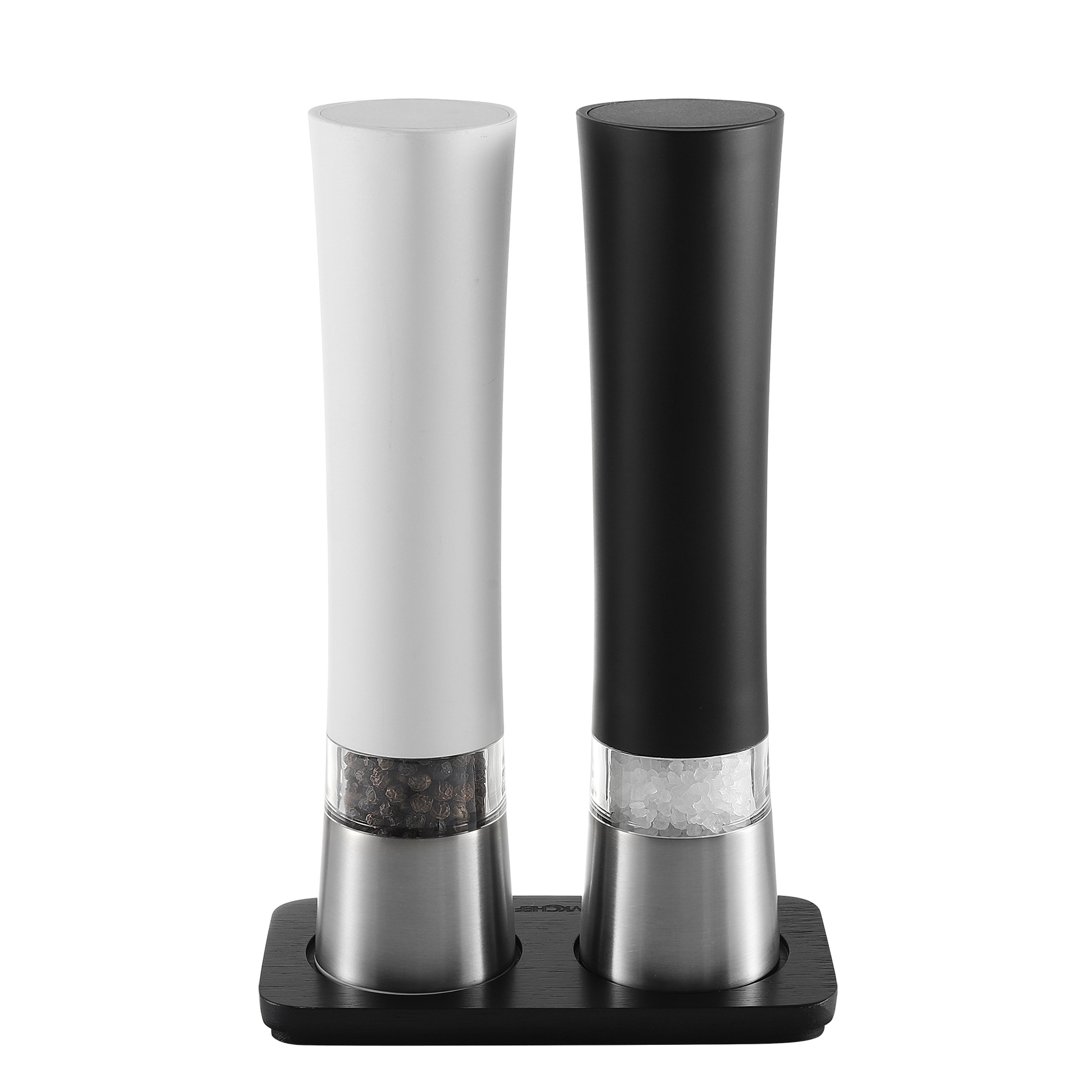 ナチュラルテイストが心地よいバンブー素材のスタンド付きで、キッチン、食卓どちらででも便利にご使用いただけます。曲線を描く本体は、見ための美しさと握りやすさを両立させたデザインです。シンプルモダンな外観はあらゆるインテリアにマッチします。 容量は必要充分な40ml。いつでも新鮮な塩胡椒をお楽しみいただけます。 すべてFDA国際食品検査基準をクリアした素材を採用しています。プラスチック素材はBPAフリーです。