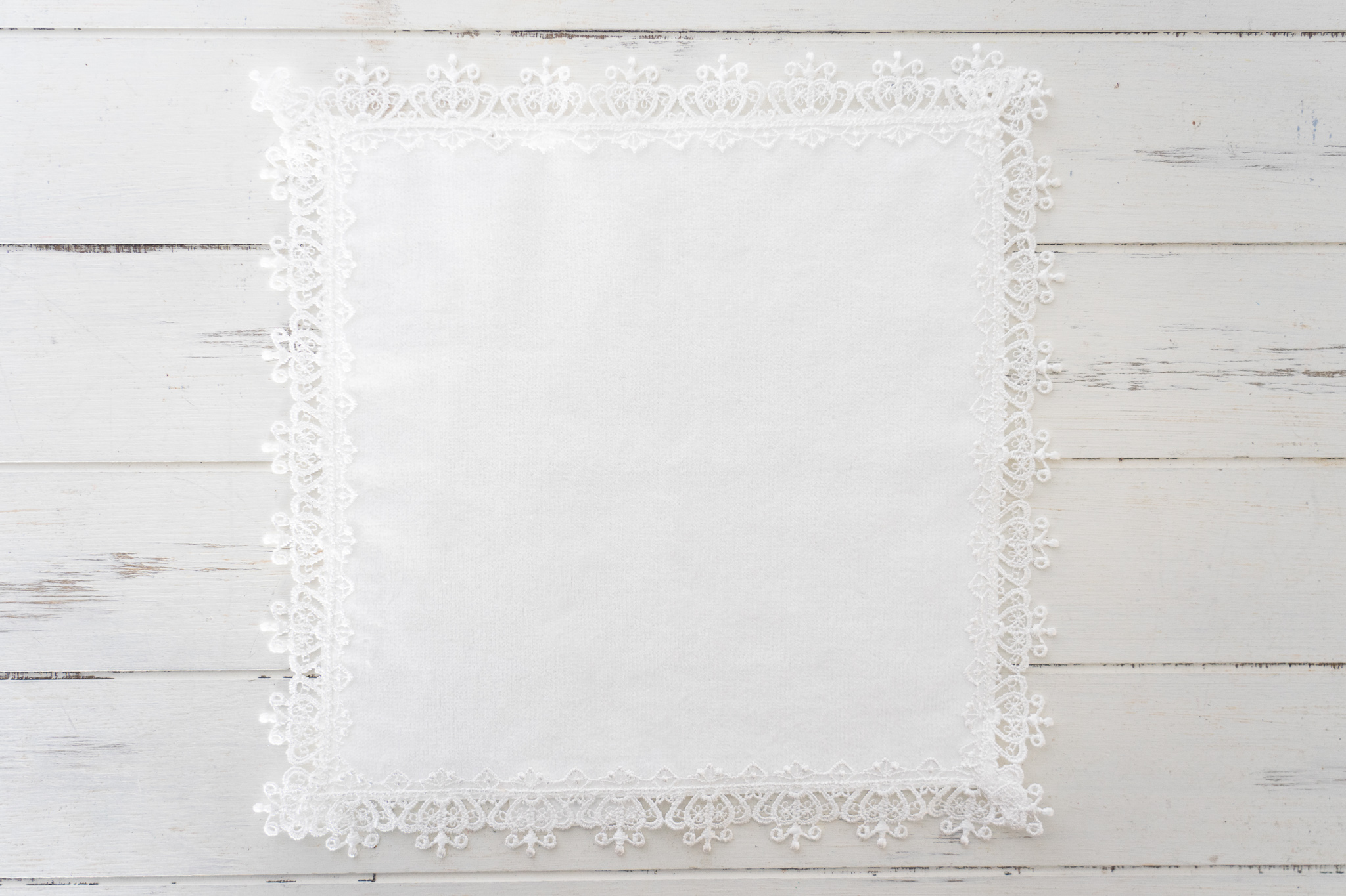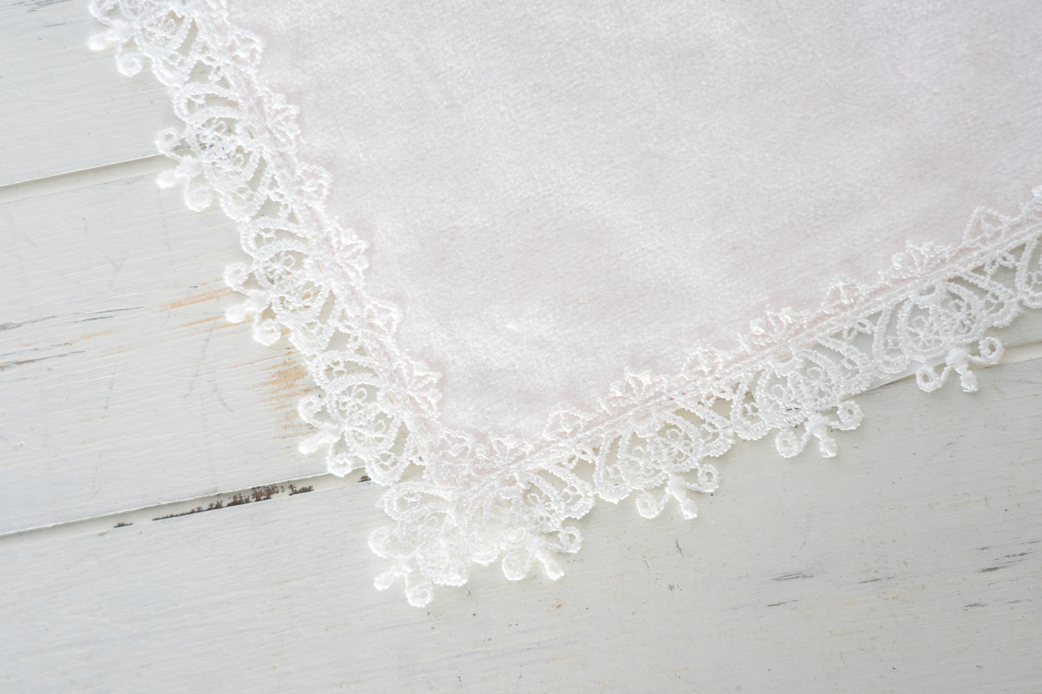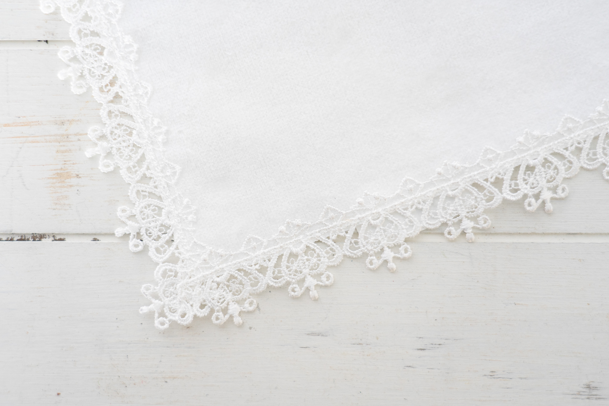 大口注文・法人のお問い合わせはこちら実用的で美しいハンカチをコンセプトに作られ、日本有数のタオル産地 今治産のタオル地を使用したタオルハンカチ。ふっくらとした肌触りが特徴的です。 表面にはパイルループをカットしたシャーリング加工を施し、ベルベットのような質感で高級感を演出しています。タオルの周りに贅沢にあしらったレースが最大の魅力です。