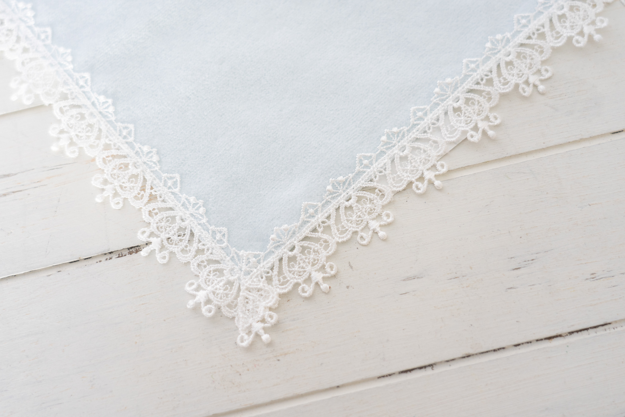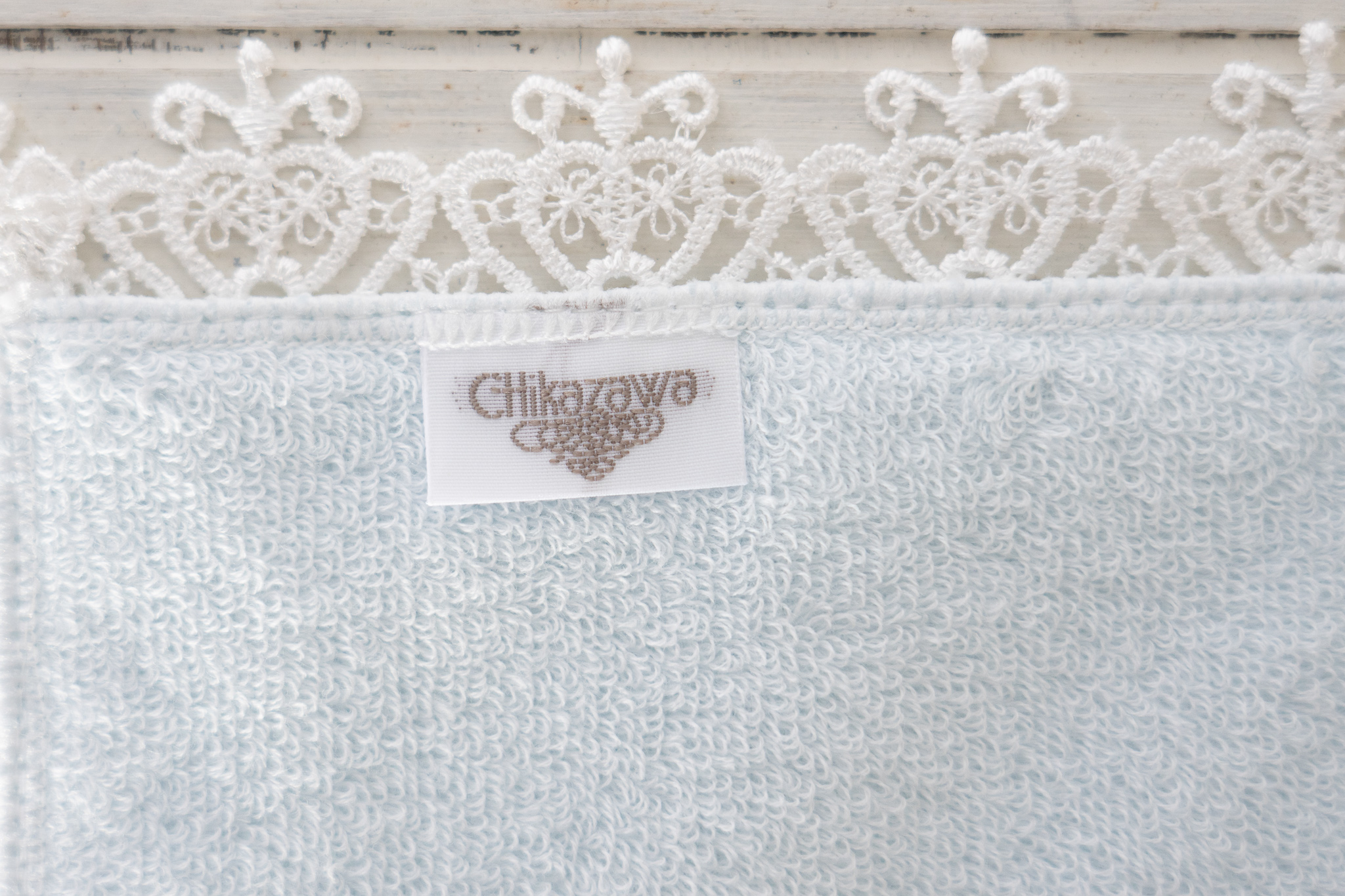 実用的で美しいハンカチをコンセプトに作られた、近沢レース店を代表するミニタオルハンカチ。今治産のタオル地の周りに贅沢なレースを施し、実用性と芸術性を兼ね備えた1枚に仕上げました。
