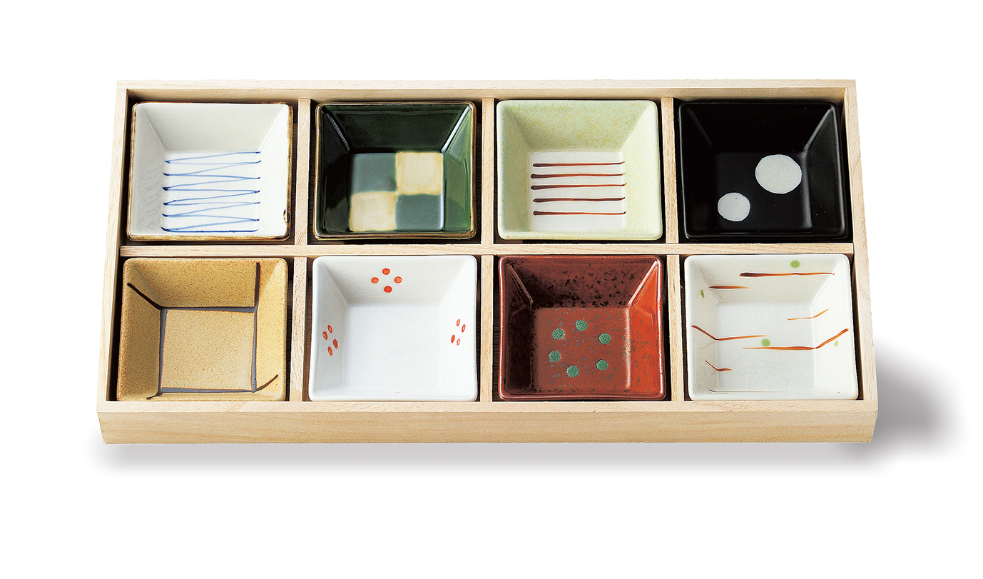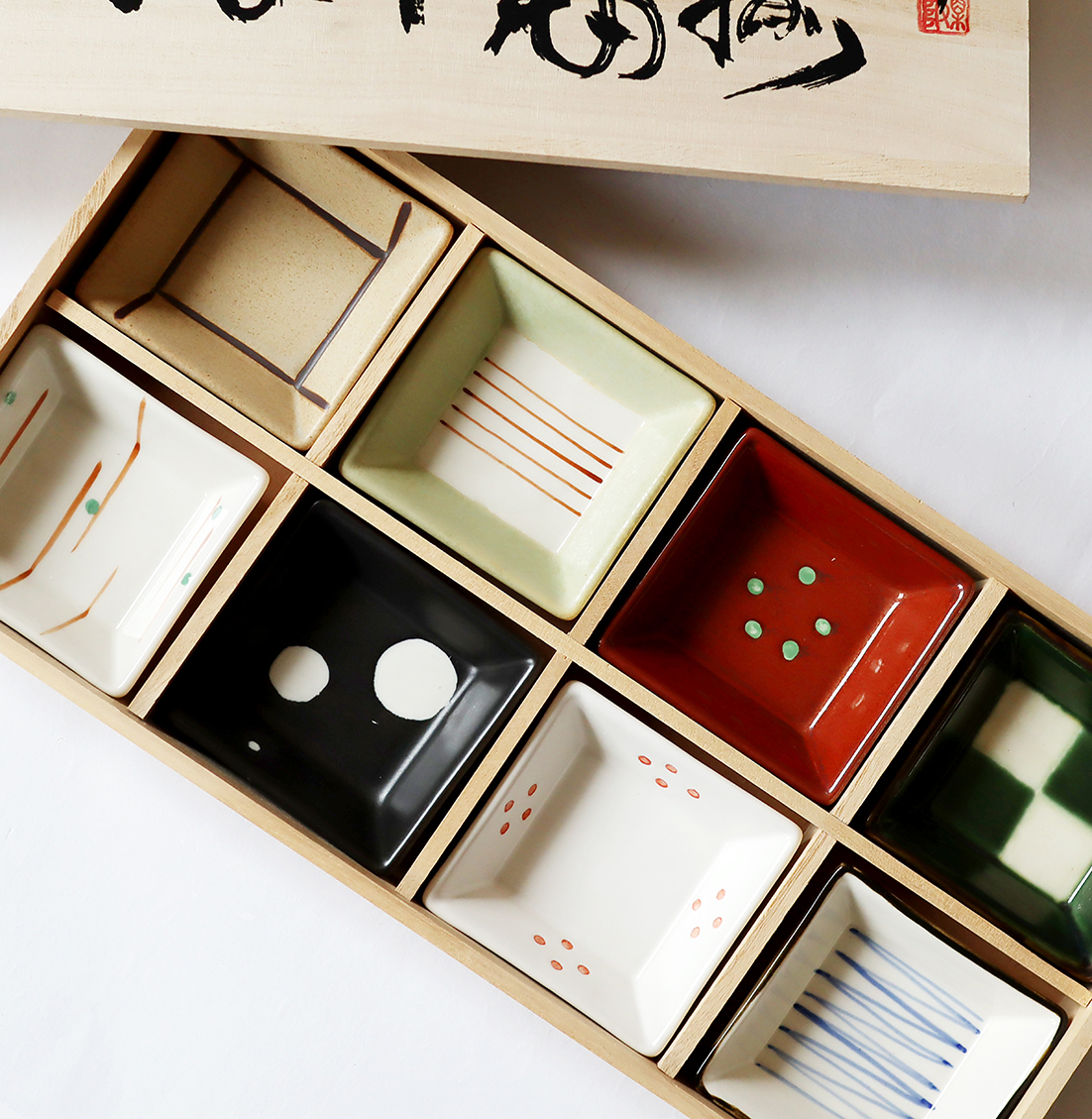 おしゃれな和モダンデザインの八客小鉢揃です。 四角い角小皿は収納性もあり、毎日幅広く活躍します。 美濃焼の食器をプレゼントしてみてはいかがでしょうか。