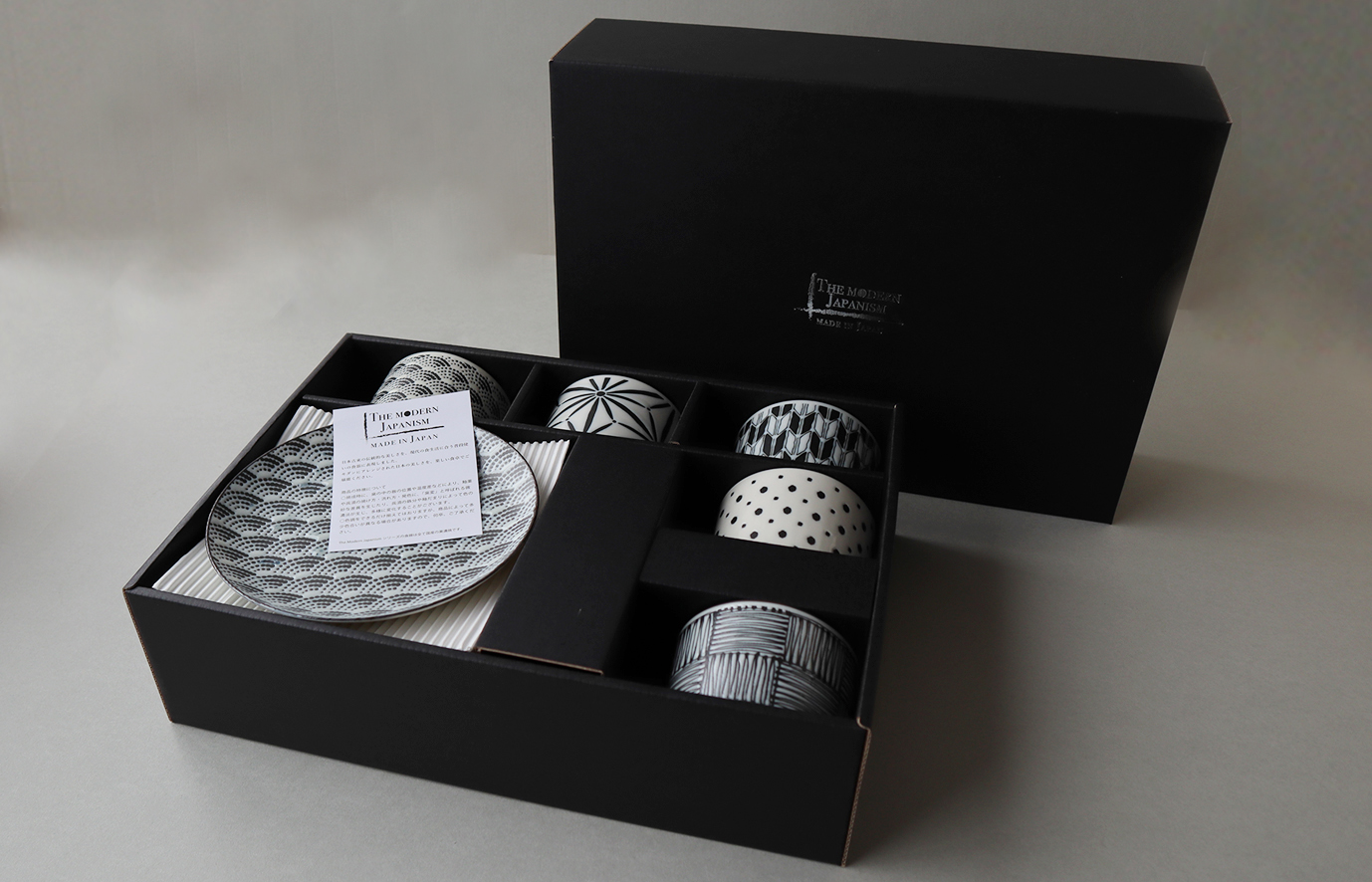 シャープでオシャレな形が和柄とマッチしています。贅沢なギフトセットです。