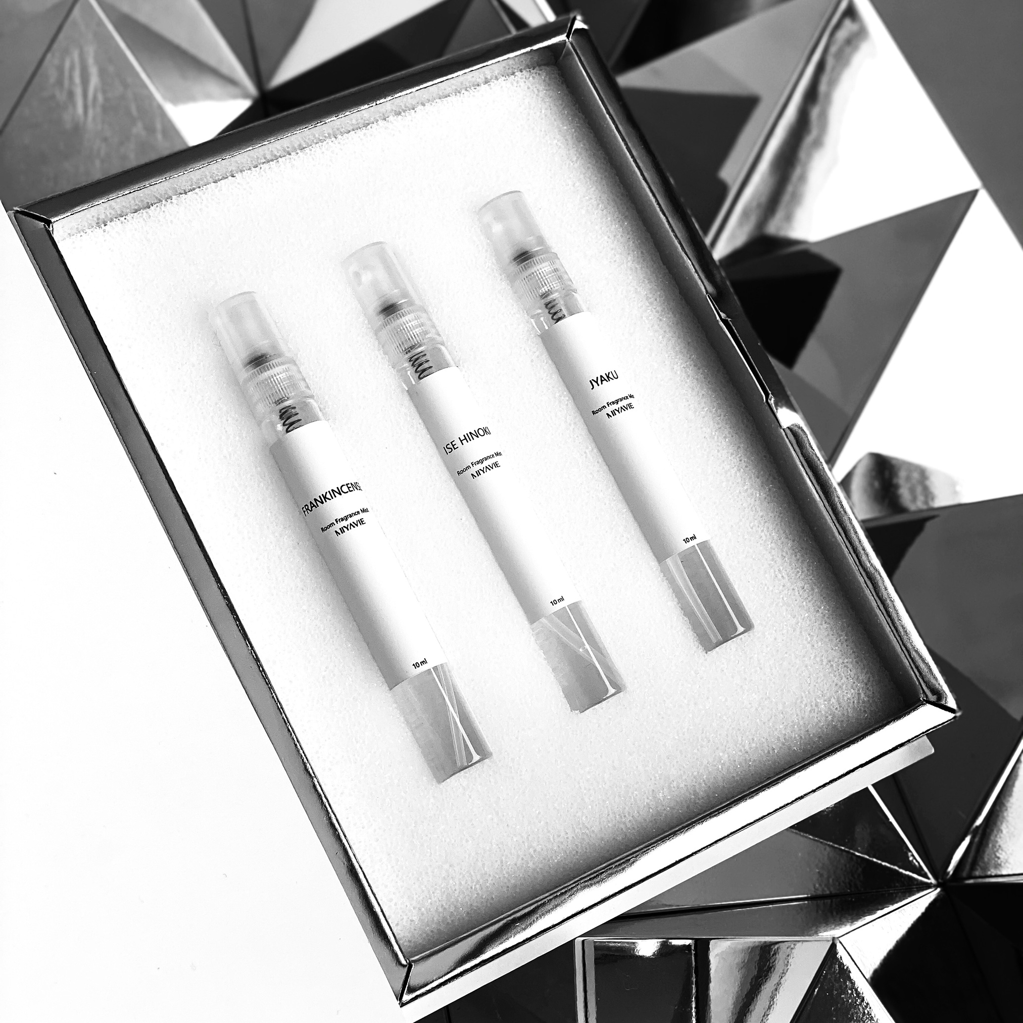 限りある地球の資源を未来につなげていくことを、芸術性と社会性の追求により創造していくことが理念である【MIYAVIE ミヤヴィエ】から”ルームフレグランスミスト3pcsセット”をお届け。希少な素材から作られた精神性を高める荘厳な香りを、どうぞお楽しみください。