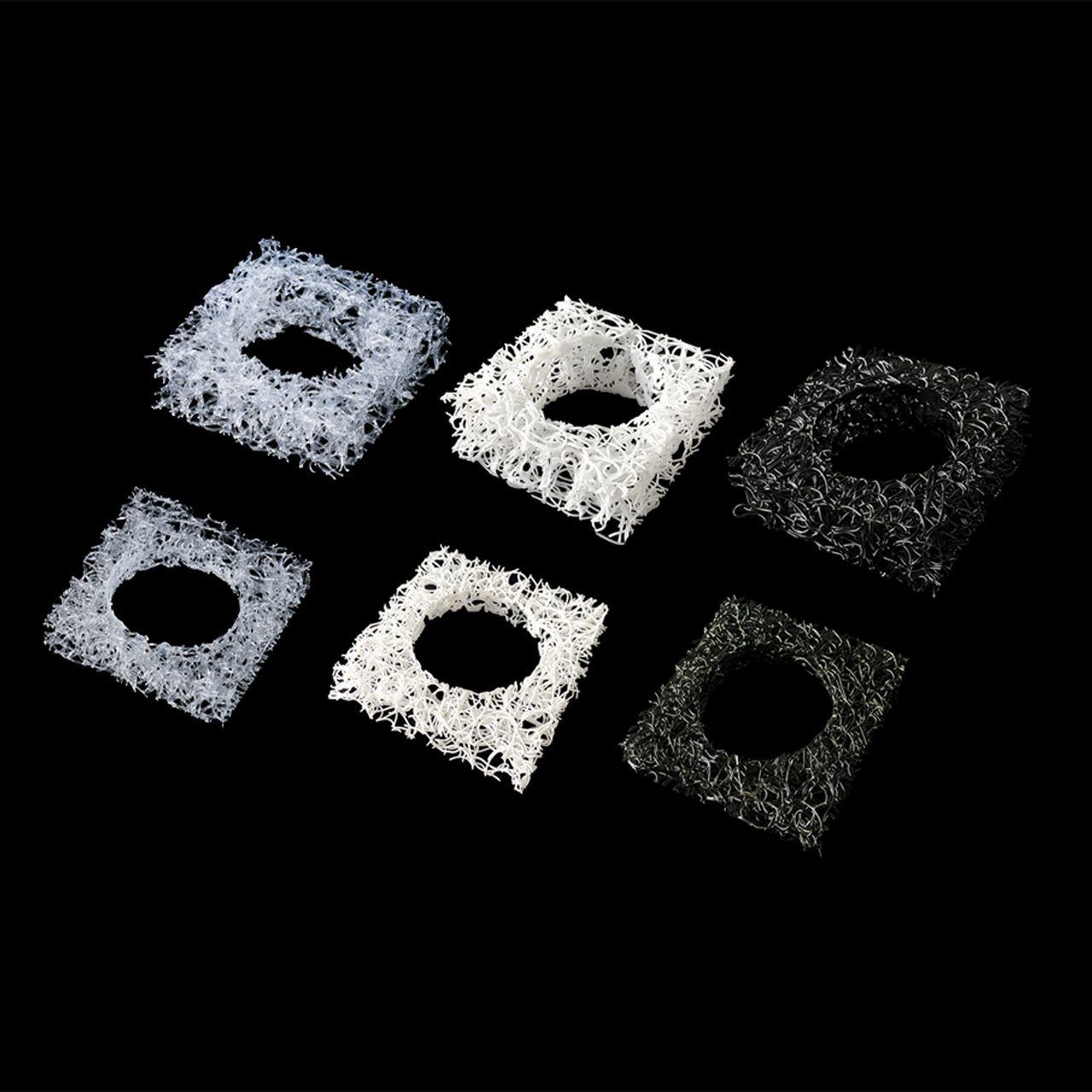 限りある地球の資源を未来につなげていくことを、芸術性と社会性の追求により創造していくことが理念である【MIYAVIE ミヤヴィエ】から”ブレスレット”をお届け。建築的なスクエア型フォルムと、蜘蛛の巣状に絡み合った網目構造による、アートで美しいブレスレットです。