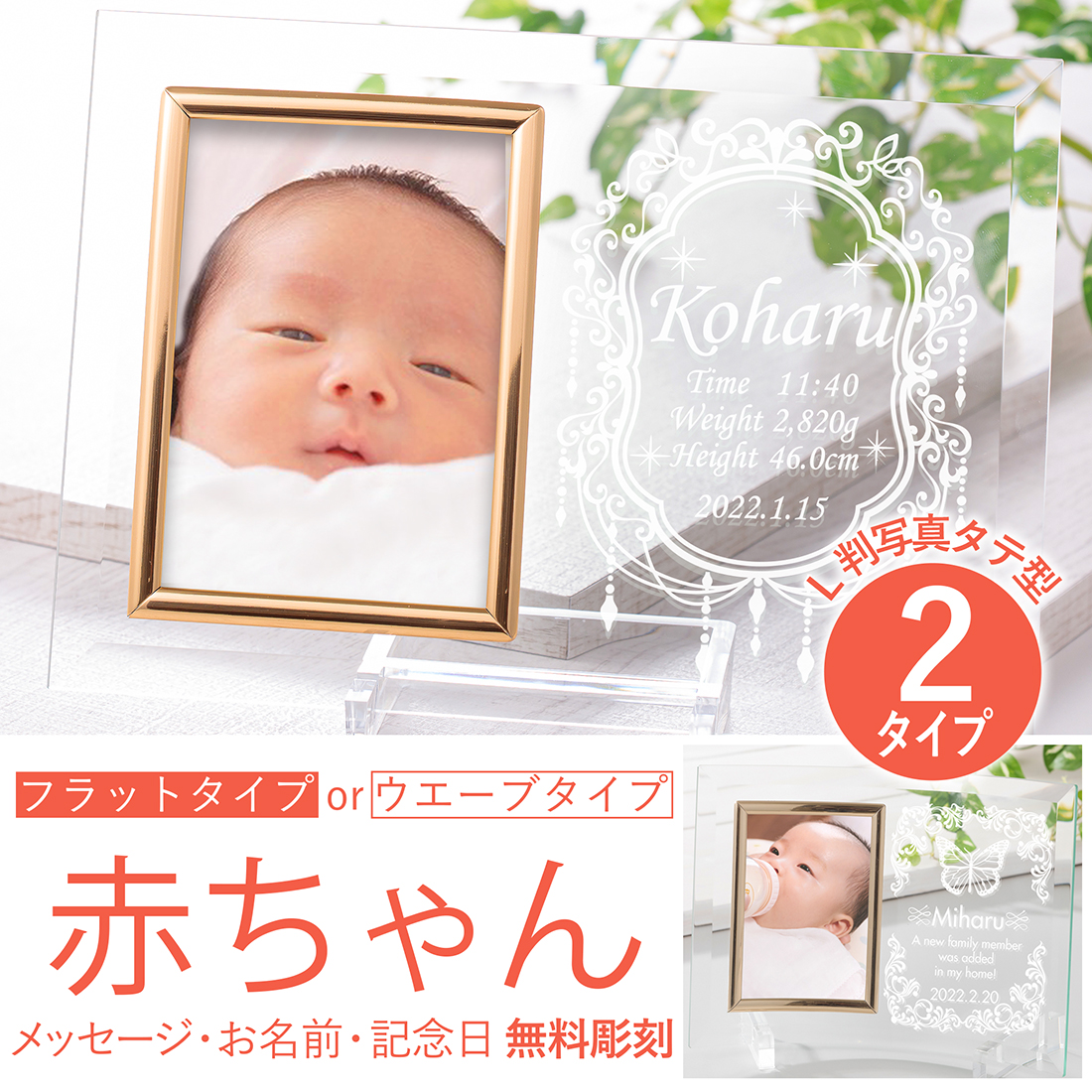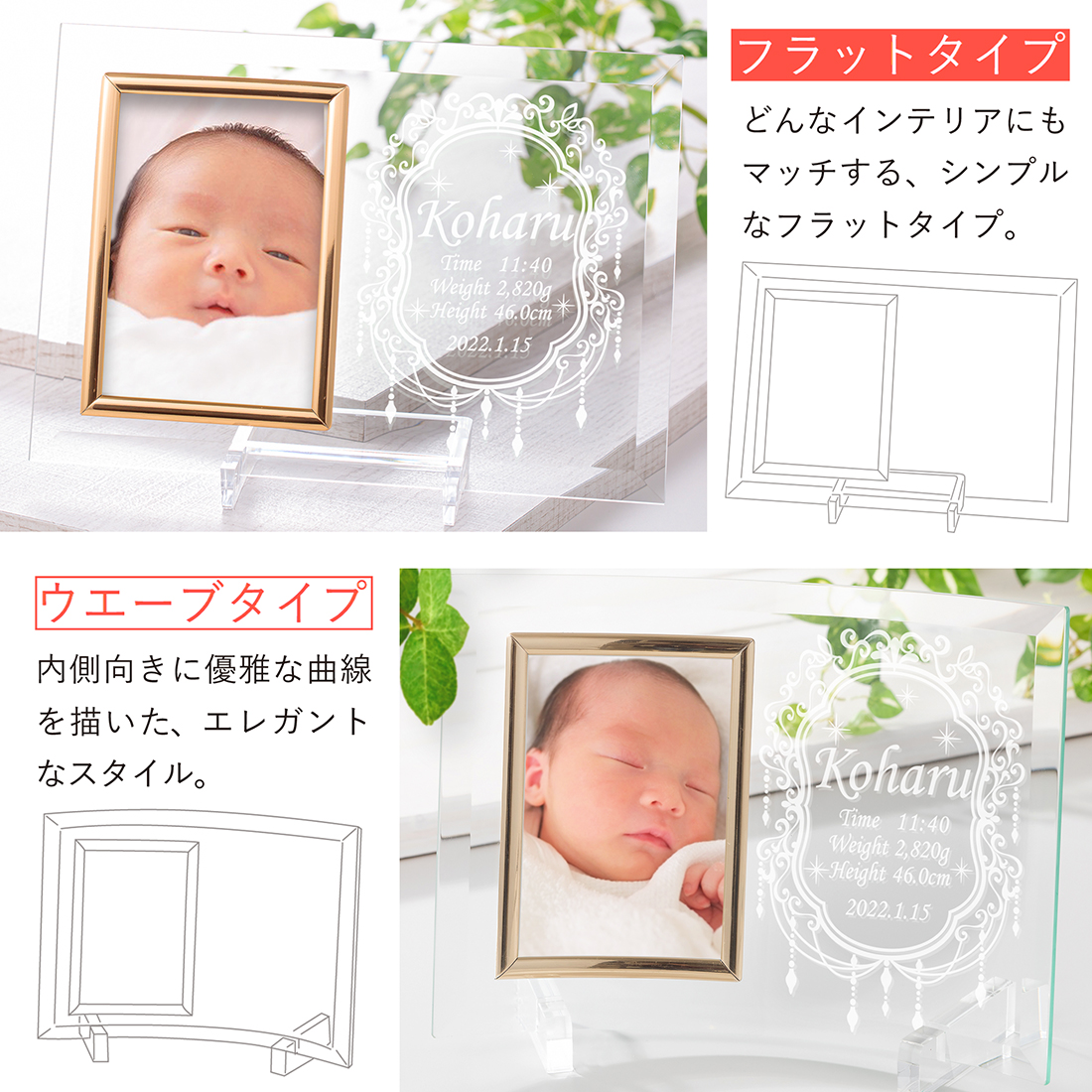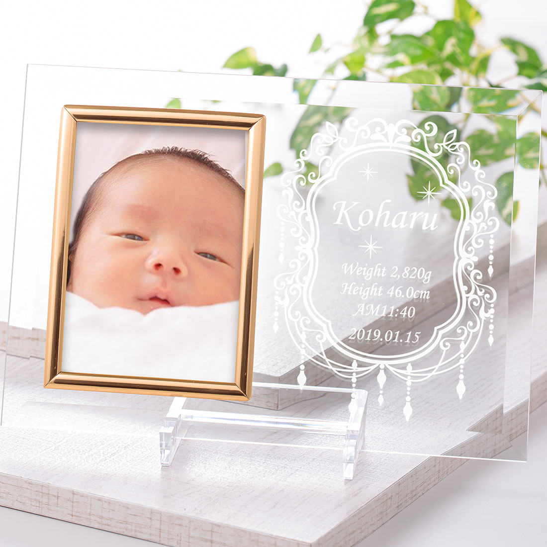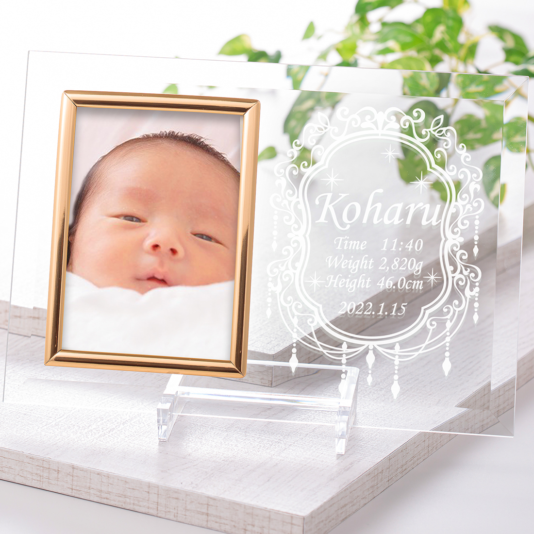大口注文・法人のお問い合わせはこちら透明感の美しいガラス製フォトフレームはお部屋のインテリアにもピッタリマッチします。出産祝いや内祝い、お子様が産まれた時の記念に、一生の思い出に残る記念品になります。