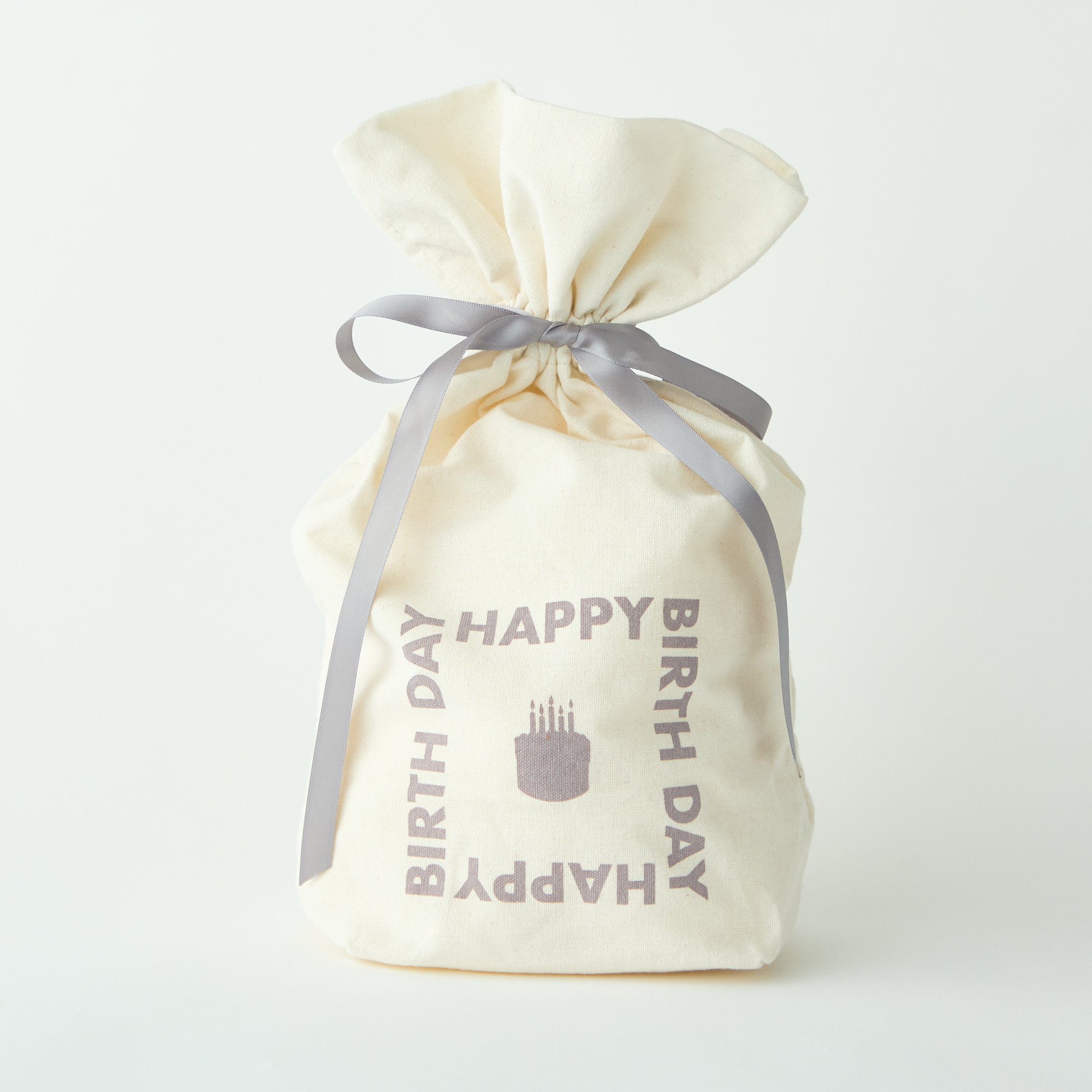 コットン巾着 【誕生日】(グレー)M(550円)