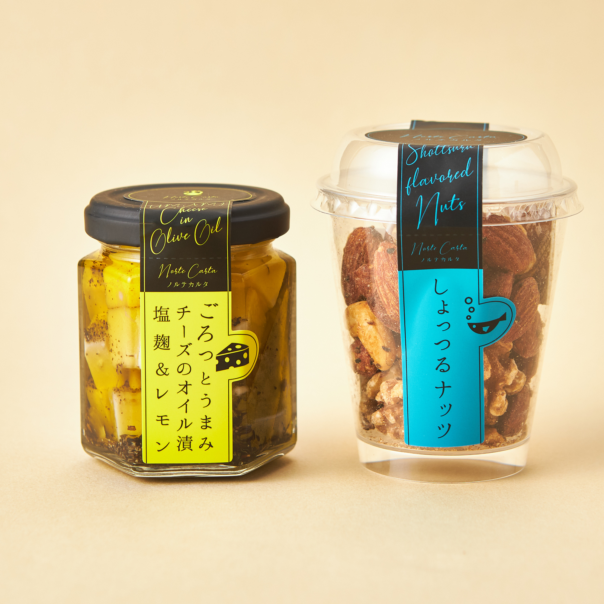 ごろっとうまみ チーズのオイル漬(塩麹&レモン)&しょっつるナッツ2点セット(1,671円)