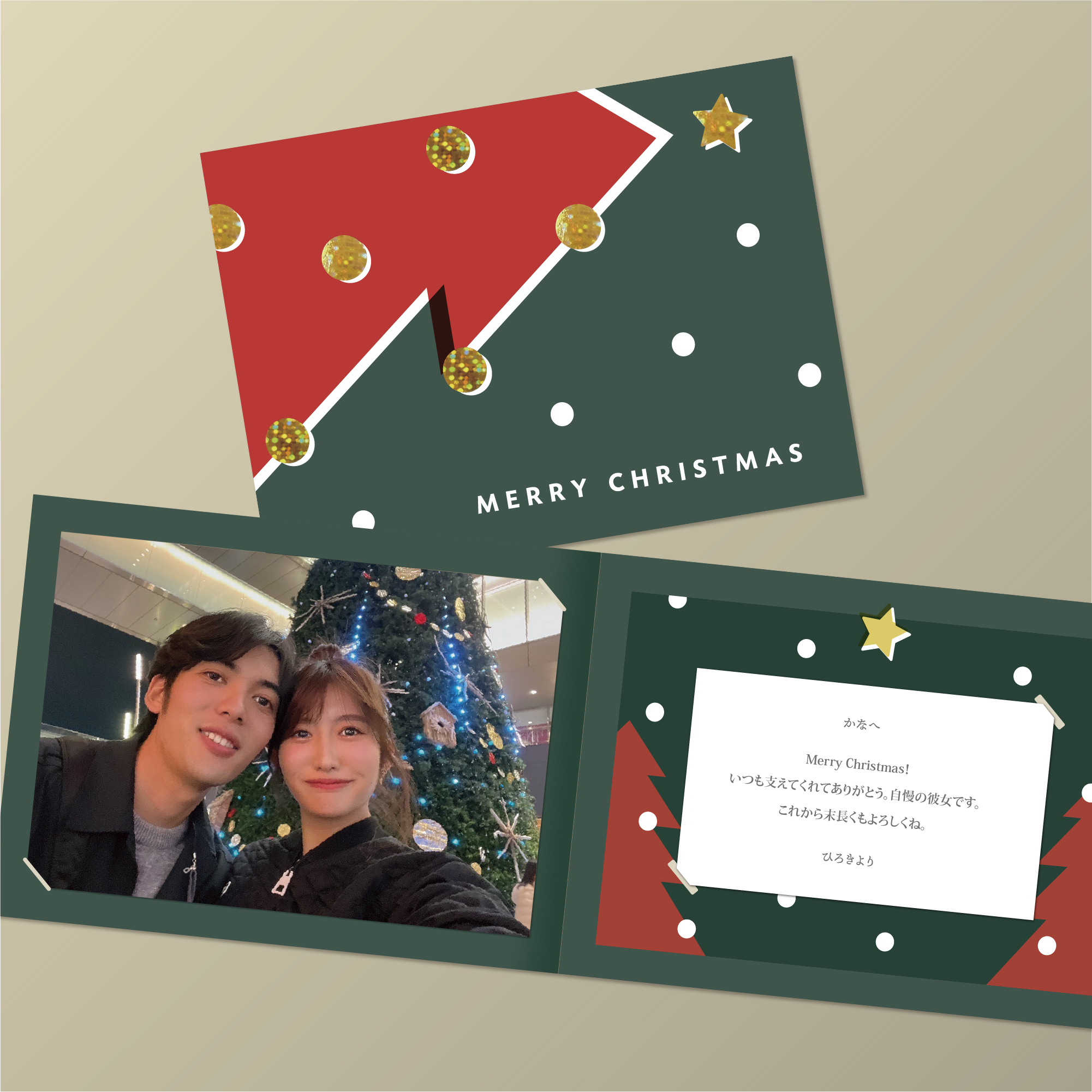 写真付きメッセージカード(クリスマス・グリーン)(680円)