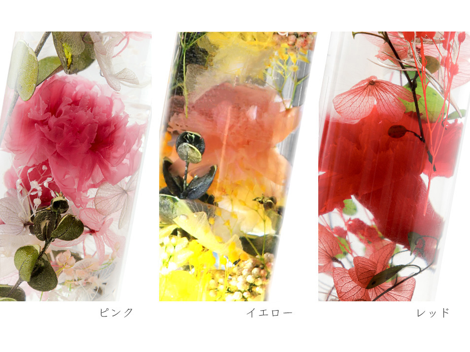 | 保存方法 | ・天然草花を使用しているため、紫外線や熱、酸化等の原因で自然退色する場合がございます。 ・直射日光のあたるところや高温多湿の場所、火気の近くには置かないで下さい。液が膨張し、ガラス瓶や蓋が破損し、液漏れする恐れがあります。 |