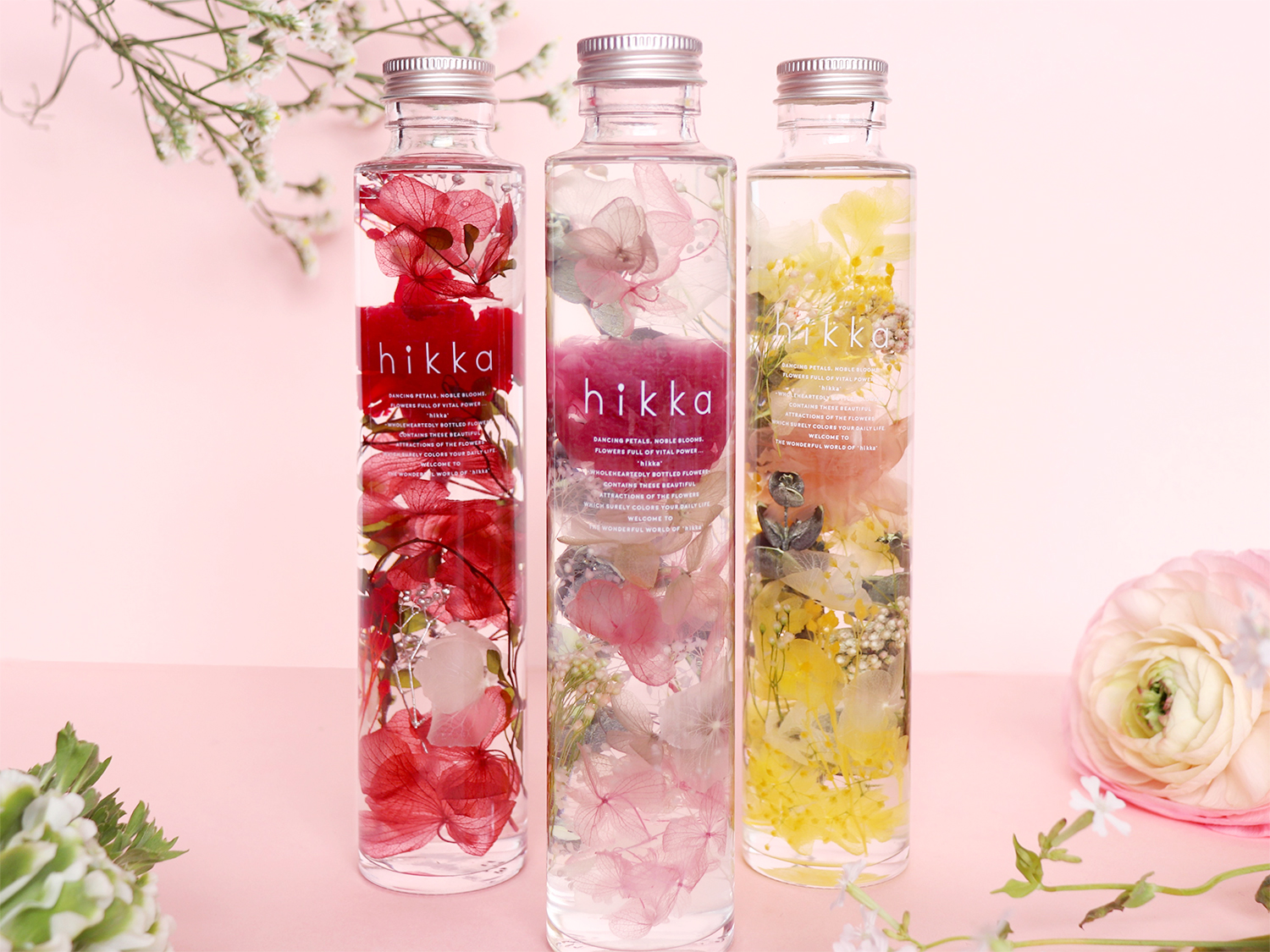 「hikka(ヒッカ)」は、『花を味方に』をブランドメッセージに、舞い上がる花びらのようにひとりひとりの飛躍を願うお花のプロダクトブランドです。一番人気のハーバリウムは、花の美しさを長期間楽しめる花束代わりのギフト!幅広い年齢層に好まれる、華やかながらも落ち着いたデザインがhikkaの特徴です。