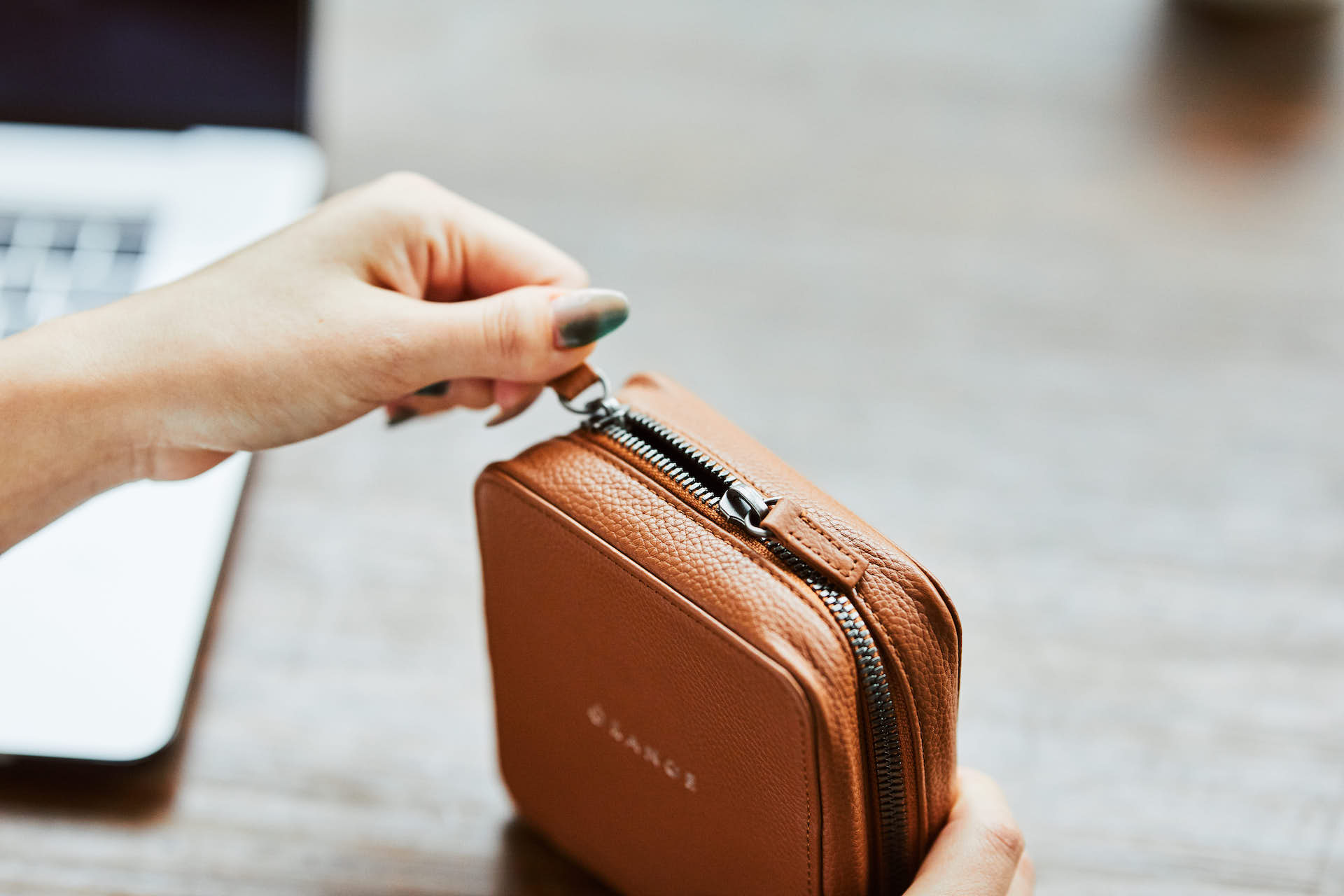 THE POD miniは、充電器やケーブルなどを綺麗に収納できるコンパクトなガジェットケースです。充電器やケーブルなど、ちょっとしたガジェットを持ち運ぶのに最適です。贅沢に本革を使用しながらも、重さわずか110g。毎日快適に持ち運んで使えます。