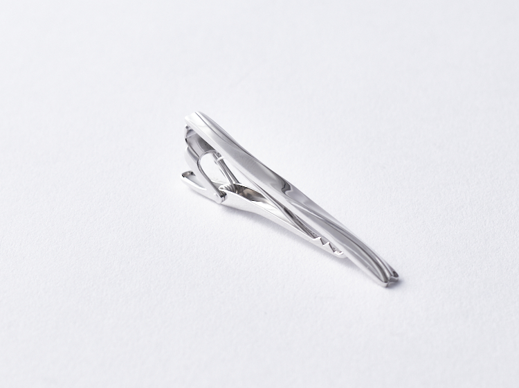 ネクタイをはさむ付属も、曲面の多い柔らかい上品なデザインのものを使用しています。
