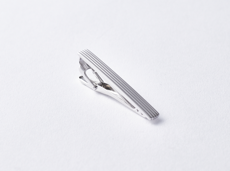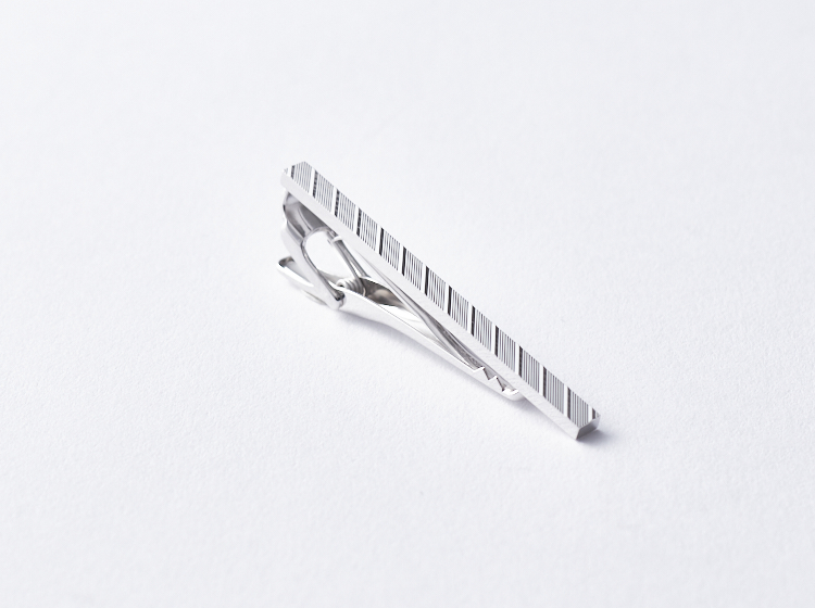 甲丸上のラインがボーダー状に並んだベーシックなタイバー。 あらゆるシーンで使用できる上品なデザインです。 丁寧に磨きこまれた鏡面仕上げです。