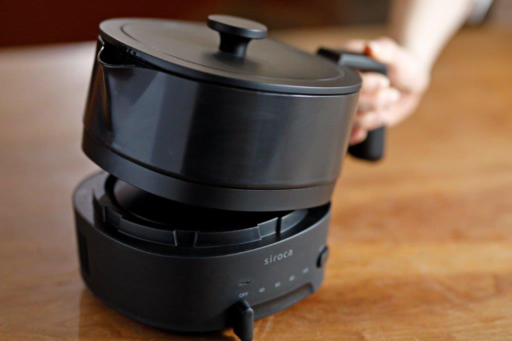本体に鍋をのせるだけの簡単構造で、取り扱いもラクラクです。