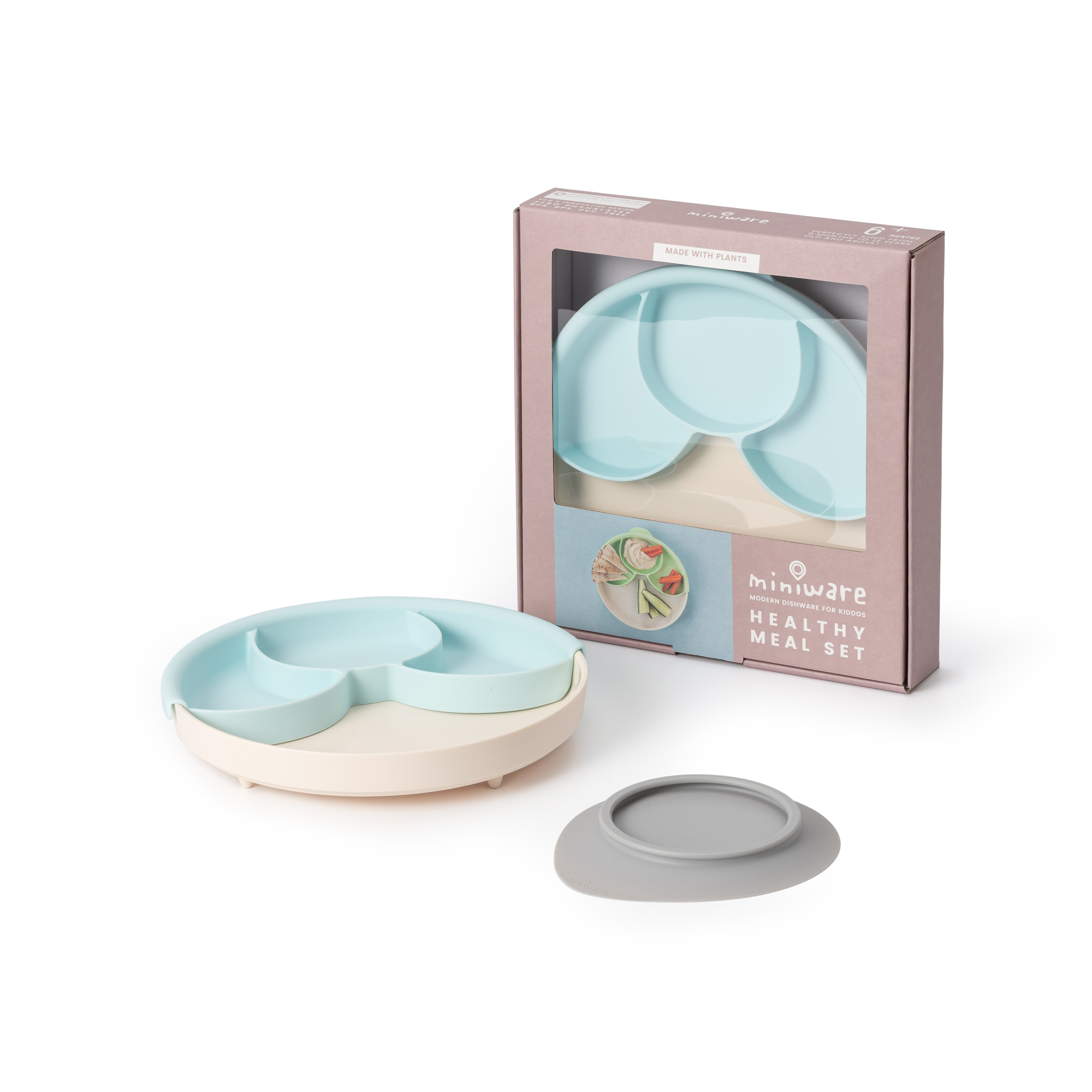 お子さまへの家族の愛情から生まれた【miniware】のミールセット。仕切り付きでバランスの良い食事をサポート!幼児と環境にやさしい素材で作られた食器です。吸盤でテーブルに固定できるので、お皿をひっくり返す心配がありません!かわいいギフトBOXでプレゼントにも最適です。