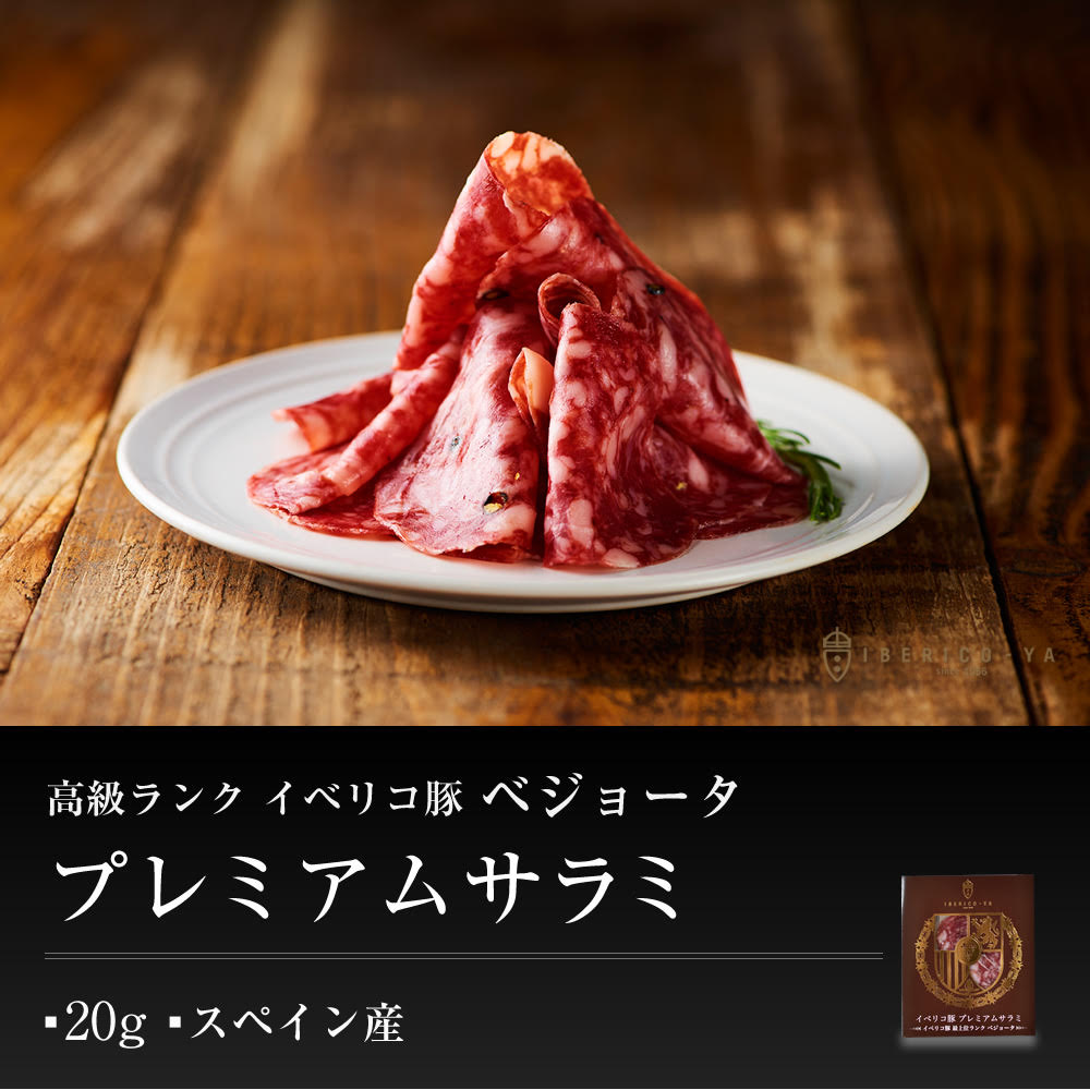 | 成分・原材料・素材・材質 | 「イベリコ豚サーロイン生ハム」 豚肉(スペイン産)、食塩、香辛料、ガーリック、砂糖/酸化防止剤(ビタミンC)、発色剤(硝酸K、亜硝酸Na) 「イベリコ豚とんとろ生ハム」 豚肉(スペイン)、食塩 「イベリコ豚サラミ」 豚肉(スペイン産)、食塩、黒胡椒、デキストリン、ブドウ糖、乳糖、乳タンパク、粉乳、クローブ、黒胡椒粉末、黒胡椒精油/発色剤(亜硝酸Na、硝酸K)、リン酸塩(Na)、酸化防止剤(ビタミンC)、香辛料抽出物、コチニール色素、クエン酸Na(一部に乳成分・豚肉を含む) 「イベリコ豚チョリソー」 豚肉(スペイン産)、豚脂、食塩、パプリカ、オレガノ、糖類(ブドウ糖、砂糖)、ガーリック/発色剤(硝酸K、亜硝酸Na)、着色料(赤色102号、黄色5号)、酸化防止剤(ビタミンC)、クエン酸Na |