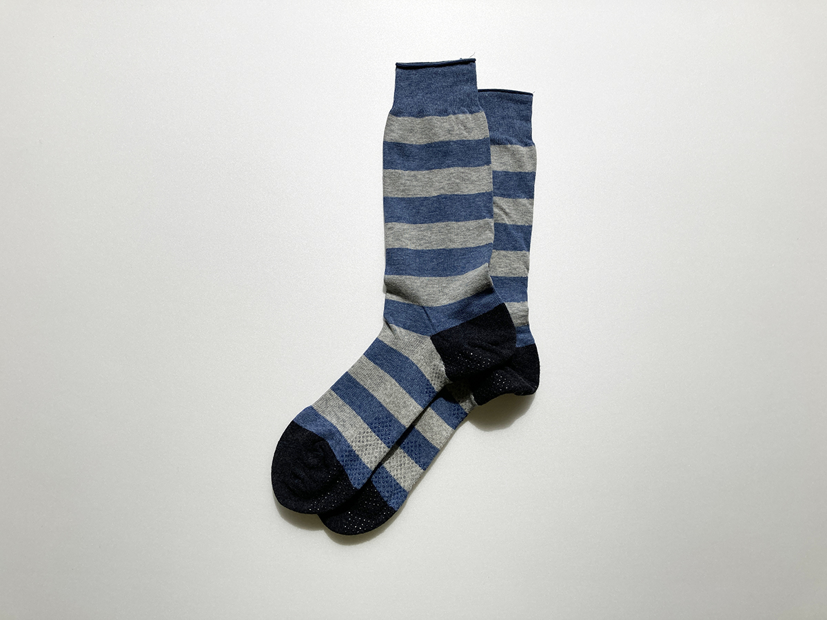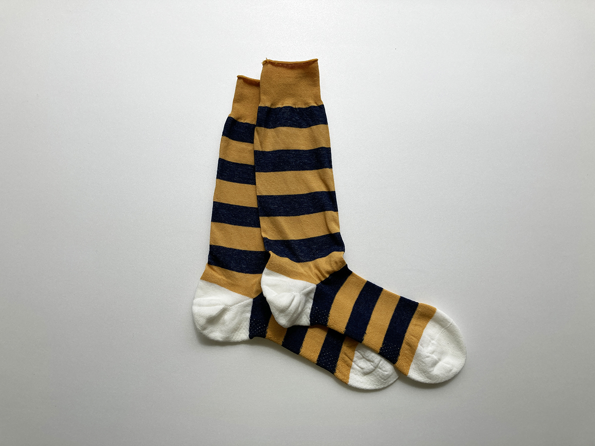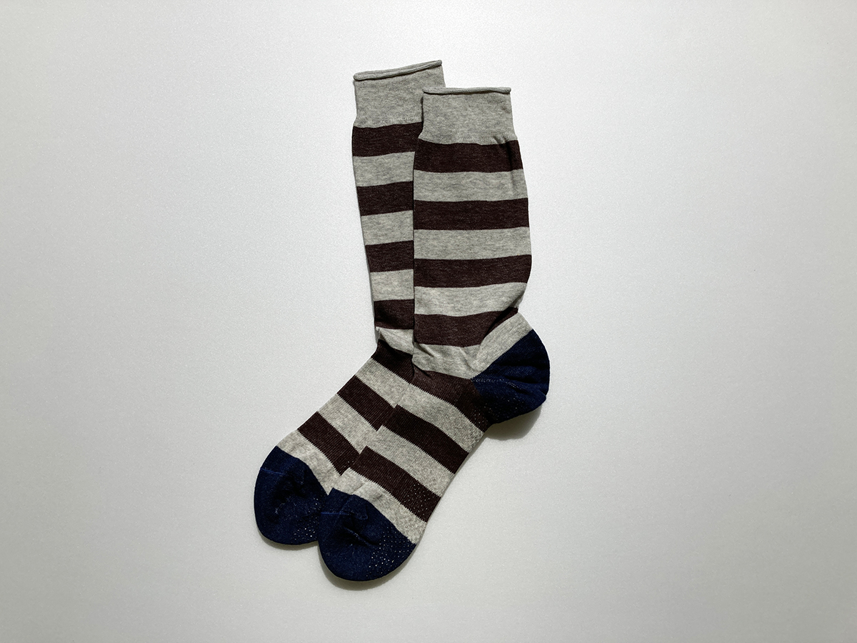 これぞジャパンメイド!稀少なハイゲージパイル機で丁寧に編み立てた心地よいボーダー柄のソックスです。