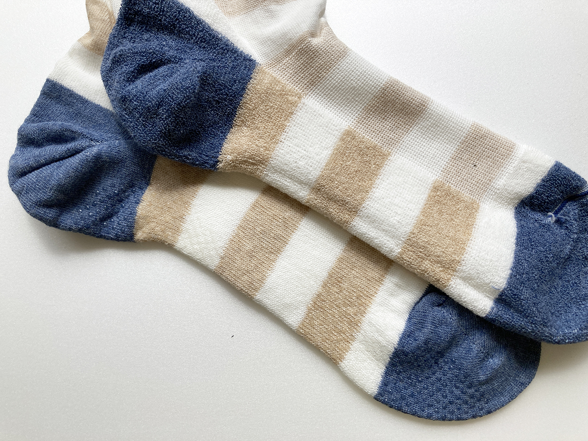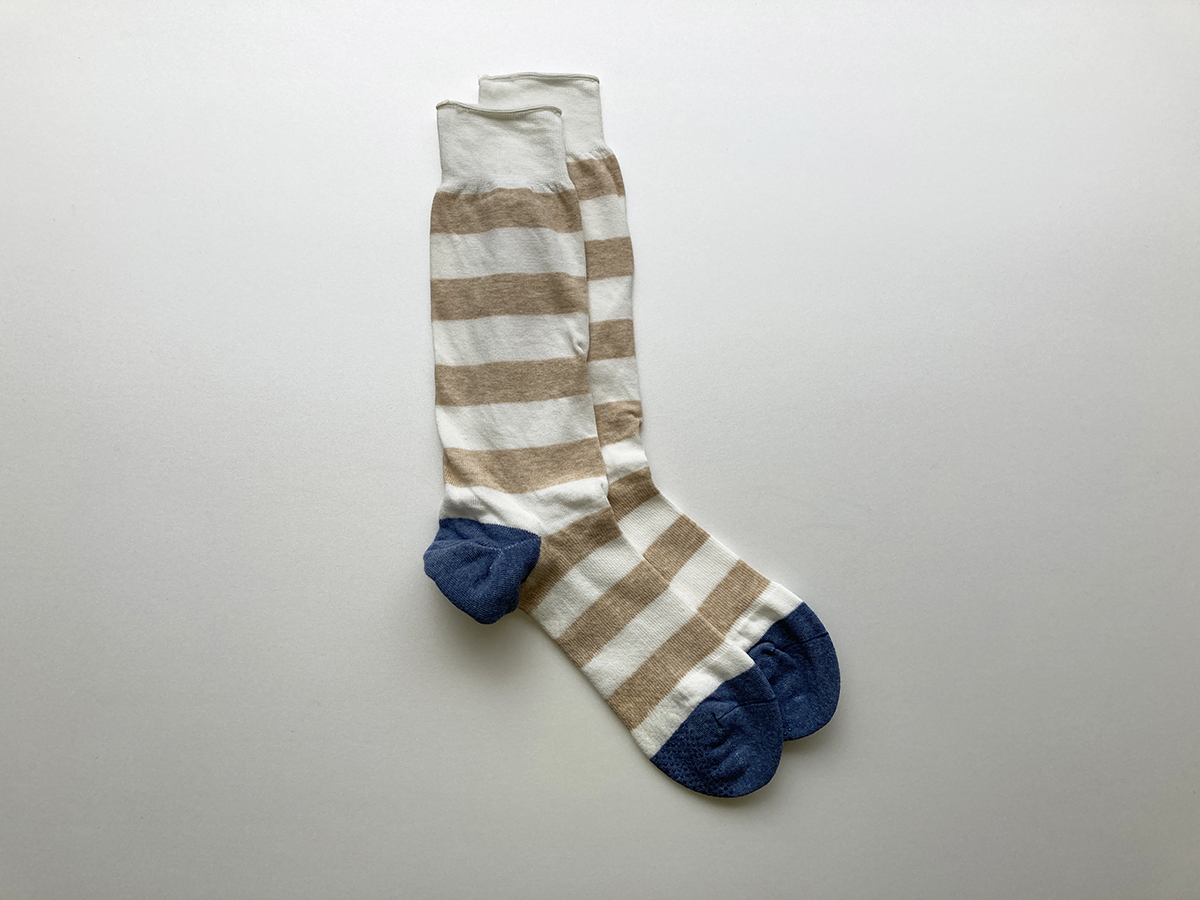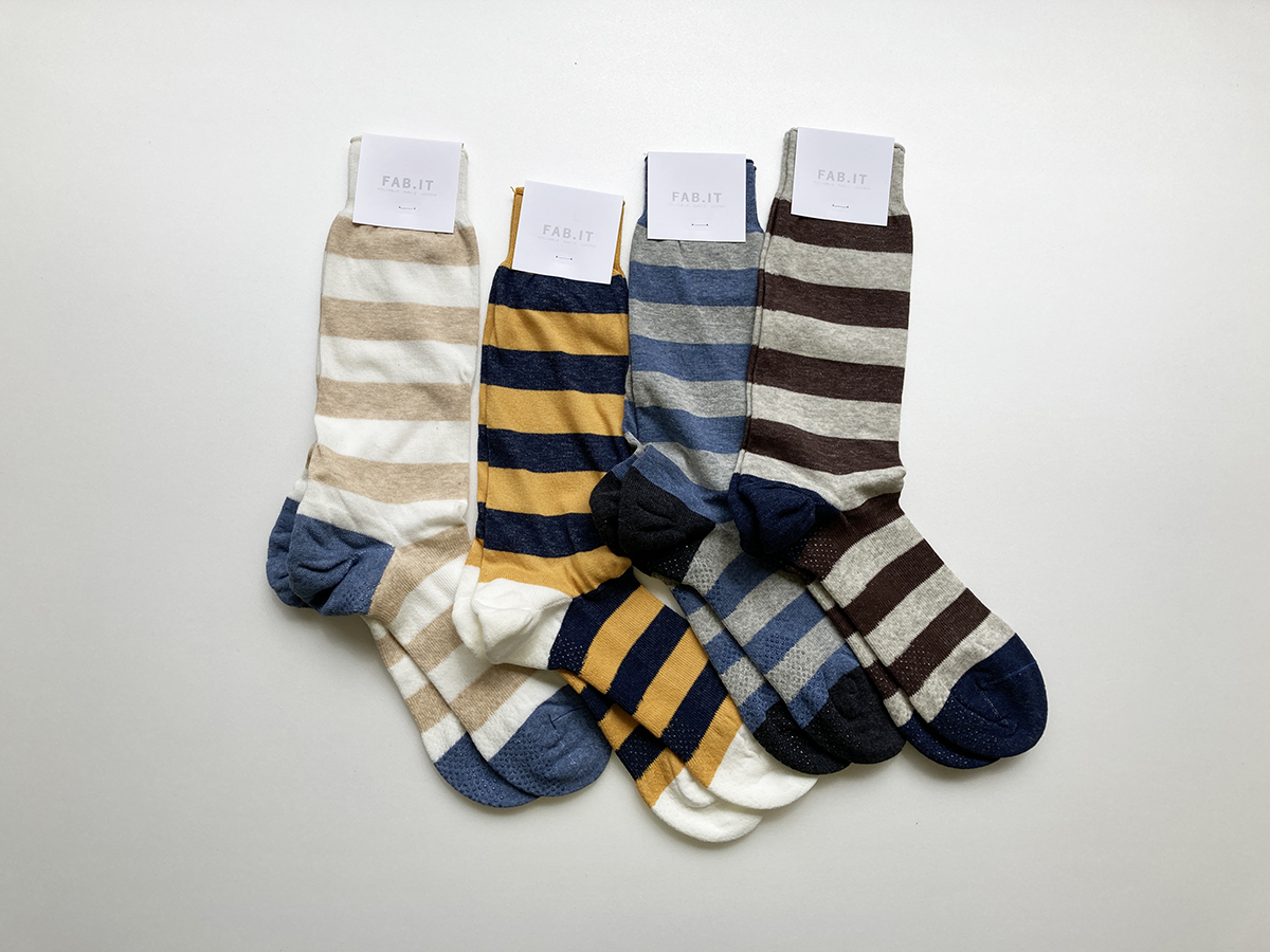 これぞジャパンメイド!稀少なハイゲージパイル機で丁寧に編み立てた心地よいボーダー柄のソックスです。