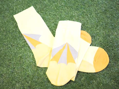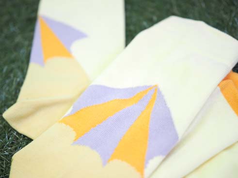 「傘職人」をイメージして作られたこのソックス。 英国紳士は雨降りでも傘をささず、ステッキさながらに細く巻いた傘をファッションアイテムとして持ち歩くのだそう。そんなコトに思いを巡らせたなら、憂鬱な雨降りでも気分が盛り上がる。このソックスのバックスタイルにデザインされた幾何学的な傘は、まるでポップアートのよう。ミニマルコーデのアクセントとして、スニーカーはもちろん革靴にも好相性。爽やかなカラーリングなので、英国ライクなスーツスタイルに効かせてもハマる。コーディネートのアクセントになること間違いなし!