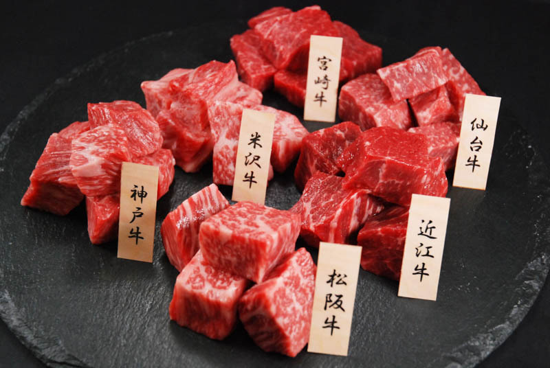 大口注文・法人のお問い合わせはこちら神戸牛、松阪牛、近江牛、米沢牛、仙台牛、宮崎牛の、日本を代表する6大ブランド和牛です。 赤身ならではのしっかりとした肉本来の味が楽しめるモモ肉を、食べやすいひとくちサイズにカットし、ステーキ用でお届けします。 それぞれ異なる肉の味わいをご堪能ください。