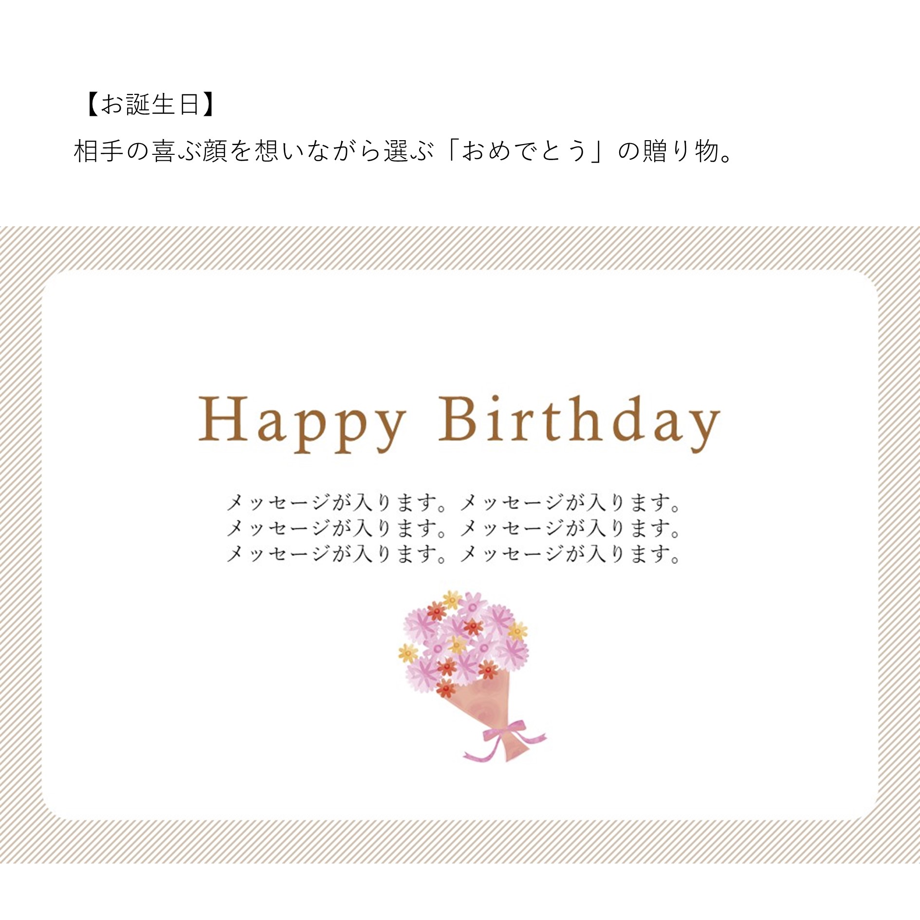 | 対応可能オプション | 無料オプション: のし(表書き名選択) 熨斗下(30文字以内にて自由記入) メッセージカード(オリジナルメッセージカード選択・50文字以内にて自由記入) 包装(簡易包装でのお届けです) |