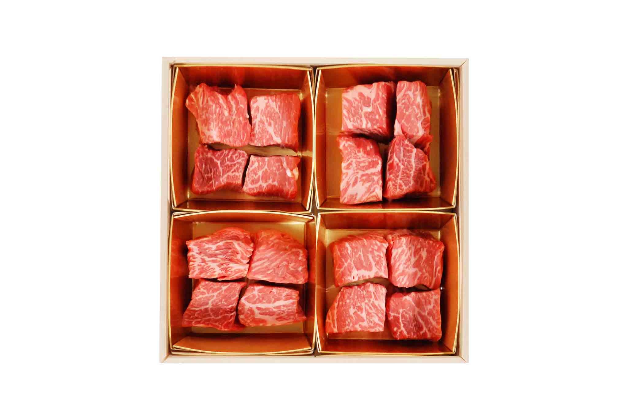 | 重さ/内容量 | 神戸牛モモ60g、松阪牛モモ60g、近江牛モモ60g、米沢牛モモ60g |