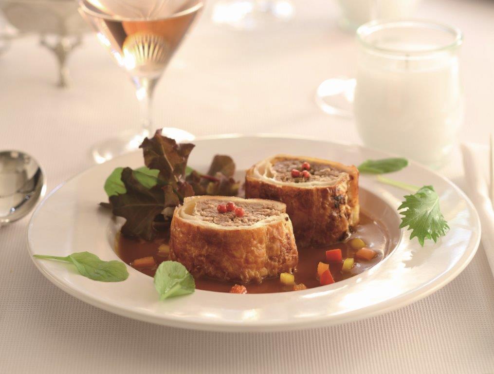 1962年の開業以来、長年国内外の人々に愛される日本を代表するラグジュアリーホテル【ホテルオークラ】のビーフパイ。神戸牛の存在感とおいしさを最大限に味わえるサクサクした食感です。上品な甘みと香りのあるマデラ酒を使用したソースで召し上がり下さい。