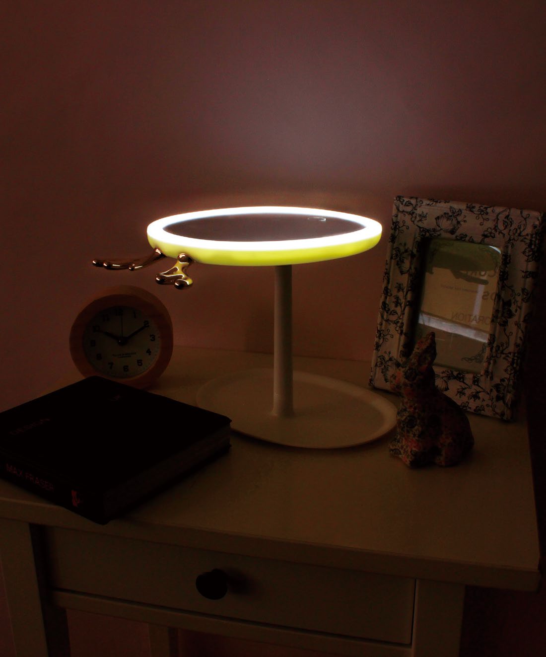 「これで気分はプリンセス!」飾っておくだけでも可愛い、メイクアップミラーになります。USB給電対応で、自然光に近いLEDライトを使用し微妙な色味まできちんと見えるのでメイクの仕上がりが良くなります。ミラー面を天井に向けると、間接照明としても使用できます。