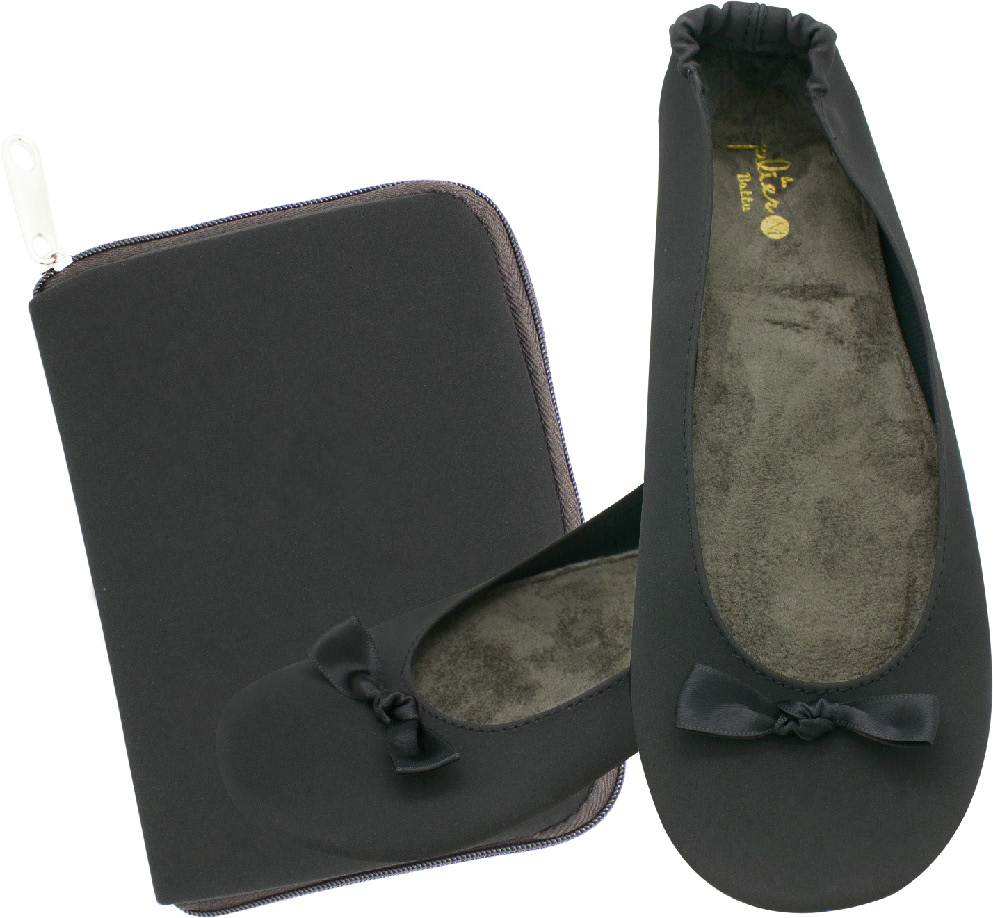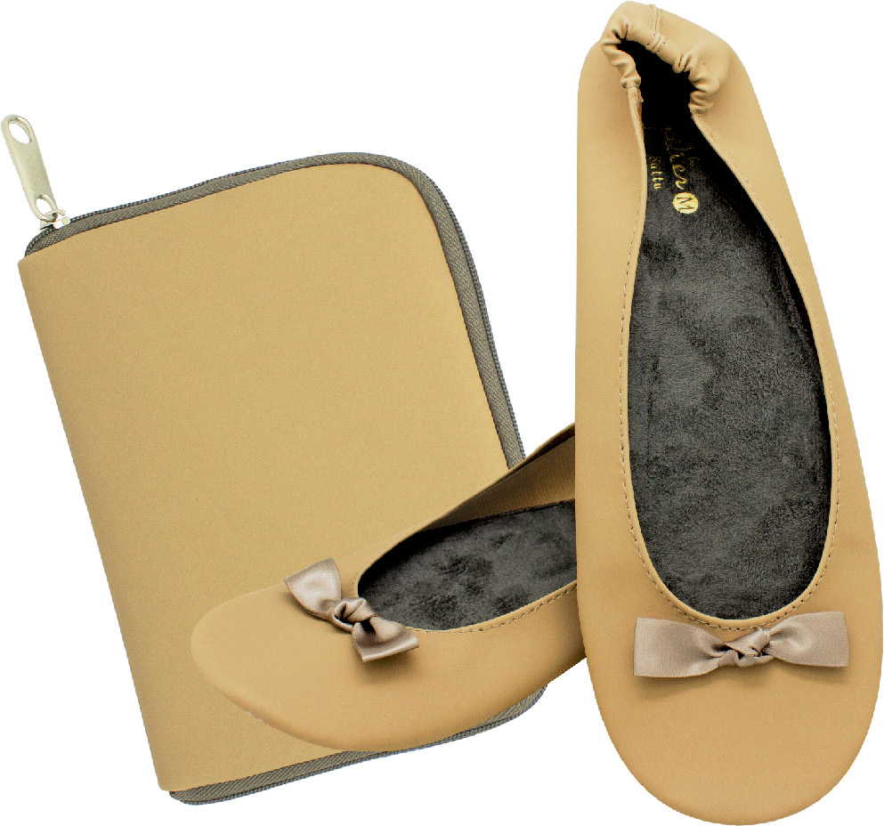 大口注文・法人のお問い合わせはこちらスマートフォンよりも軽い携帯ルームシューズです。 大人気のプリエ携帯スリッポンシリーズに、上品な素材を使用した新タイプが登場しました。 コンパクトさを重視して作られていますので、シューズとポーチを合わせてもわずか約85gの重さです。 旅行や出張中の飛行機やホテル、参観日などの学校行事やお稽古事など、いざ、という時のために常時カバンに入れておけます。 シューズとお揃いのポーチは、広げるとトートバッグになり、履いて来たシューズを入れておけます。