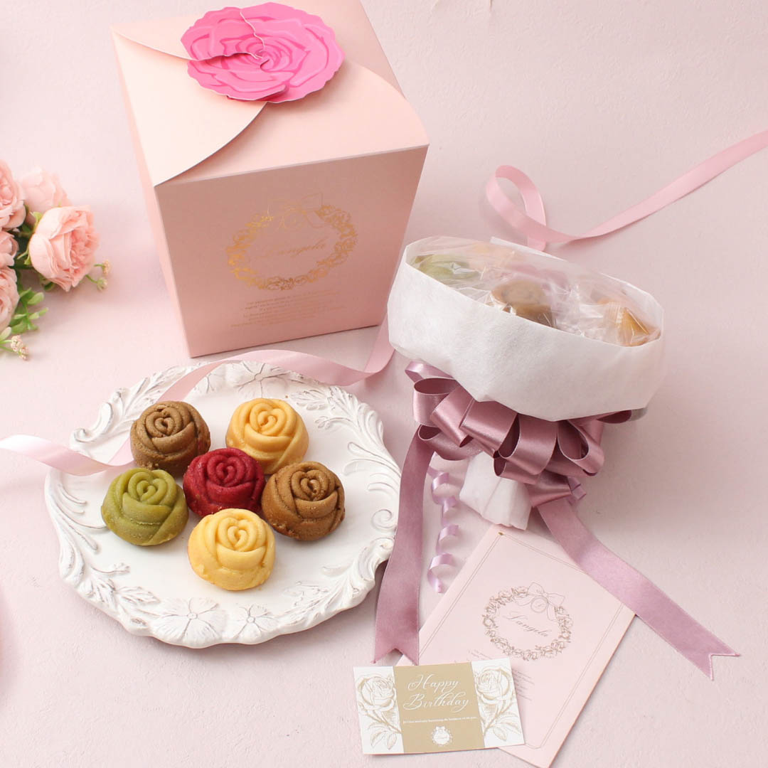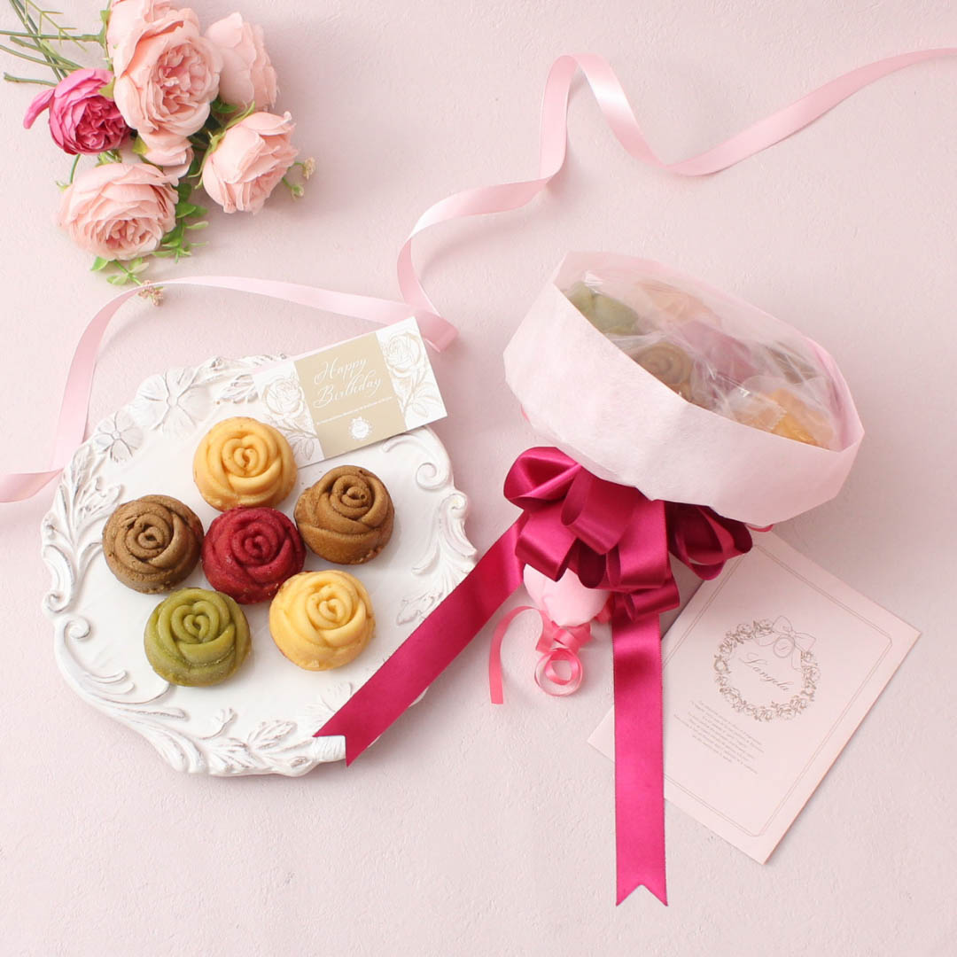 ランジェラでしか手に入らないバラのマドレーヌの花束をぜひ贈ってみてはいかがですか。