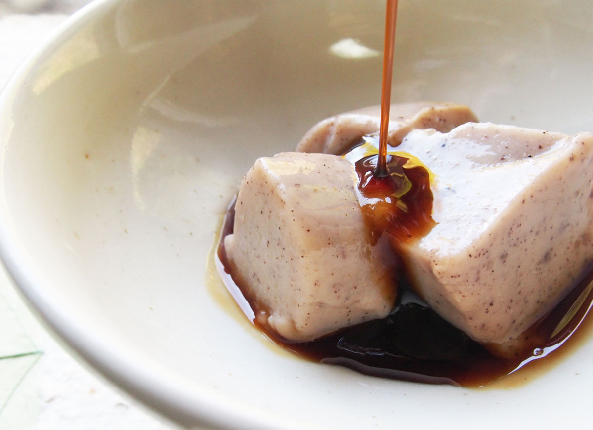 有機豆乳と丹波種黒大豆きな粉、本葛100%使用した葛豆乳ムースです。とろ~りなめらかな食感が人気です。黒糖蜜をかけてお召し上がり頂けます。