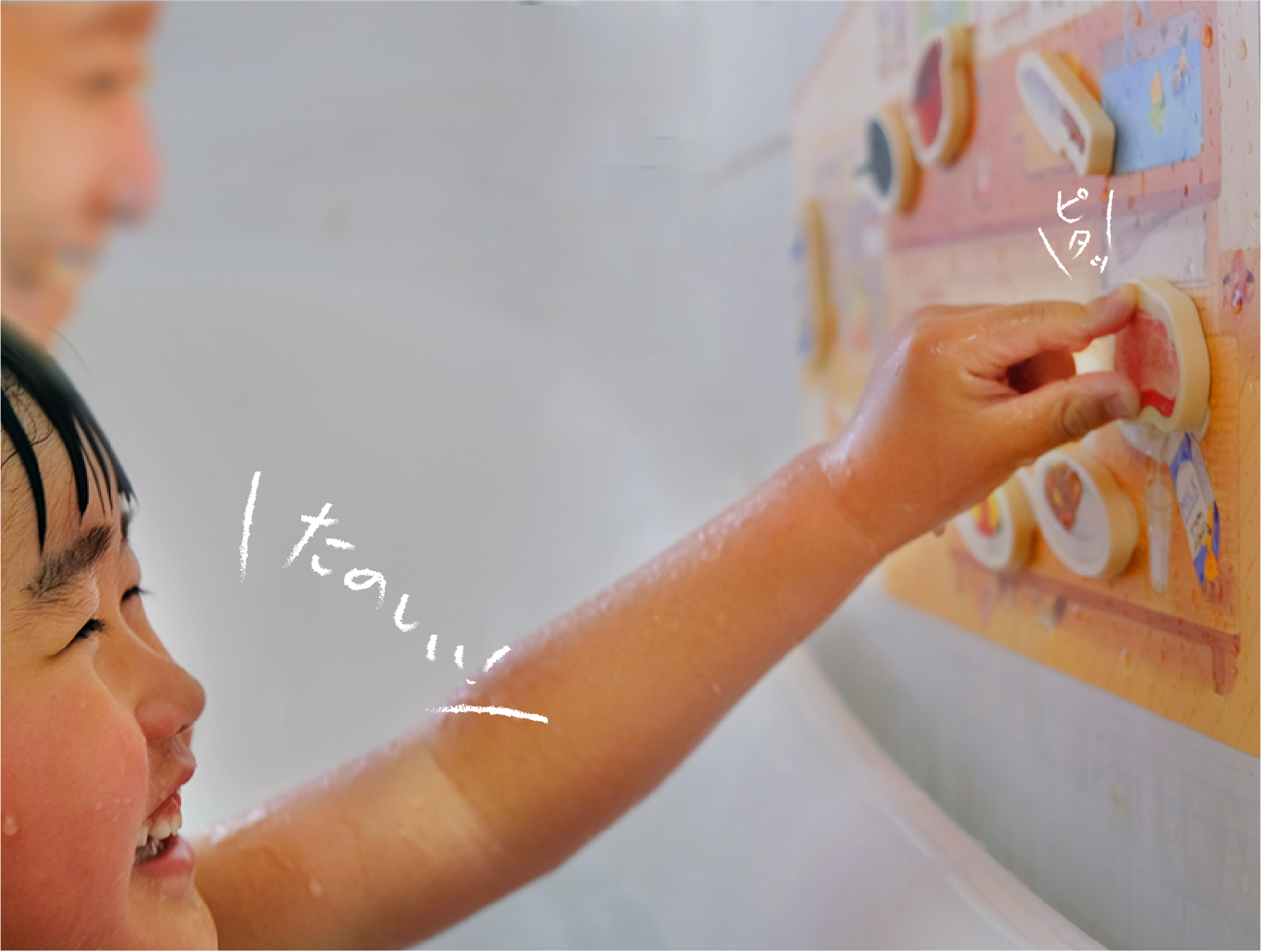 実は親子でお風呂に入れる時間は意外と少なく、1日20分で平均7才くらいまでだと、20分×365日×7年=851時間=35日程度しかありません。 日々、子育てしているとつい忘れがちですよね・・汗 裸で寄り添いコミュニケーションできる場所は他にはないですし、そんな貴重な親子のお風呂時間を、ただ身体を洗う場所にするのはもったいない。 「身体を洗う場所」を、「想像を楽しむ場所」へ変えることができたら、毎日のお風呂はもっと楽しくなり、親子で豊かな心を育む時間になると思っています♪