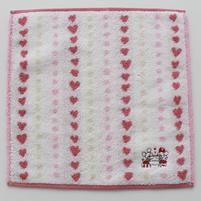ミッキーとミニーの刺繡が可愛らしいタオルハンカチーフです。 たくさんのハートデザインがおしゃれで、使うたびに気持ちも明るくなりますね。 特別なハンカチをプレゼントしてみてはいかがでしょうか。