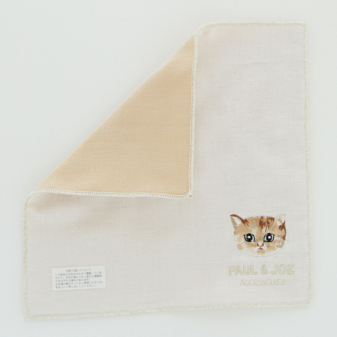 【PAUL&JOE(ポール&ジョー)】人気の猫柄「ヌネット」が刺繍されたリバーシブルガーゼです。20cmのミニサイズは小さめのバッグにもぴったり!