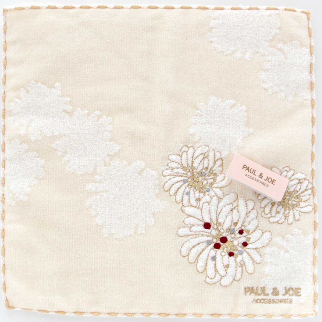 「PAUL&JOE(ポール&ジョー)」のアイコンであるクリザンテーム柄が刺繍された華やかなデザインのタオルハンカチーフです。