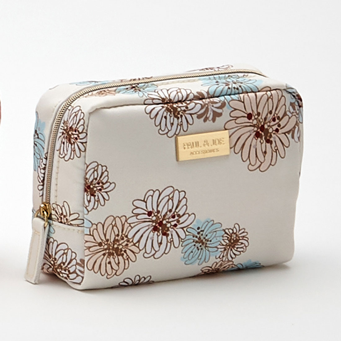 【PAUL&JOE(ポール&ジョー)】のアイコンであるクリザンテーム柄がプリントされた華やかなデザインのポーチです。内側にポケットがついていて、マチも約5cmあり機能的なデザインです。