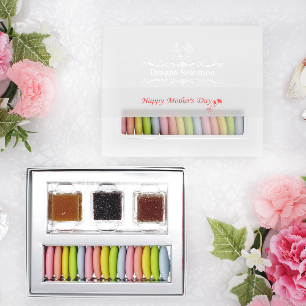 フランス語で「幸福の種」という意味もあるドラジェ。フルーツ果実の旨味をぎゅっと凝縮した伝統菓子パート・ドゥ・フリュイ。フランス産のこだわりのスイーツ2種をぜいたくに詰め合わせました。期間限定で「Happy Mother's Day」のメッセージ帯熨斗をお付けいたします。
