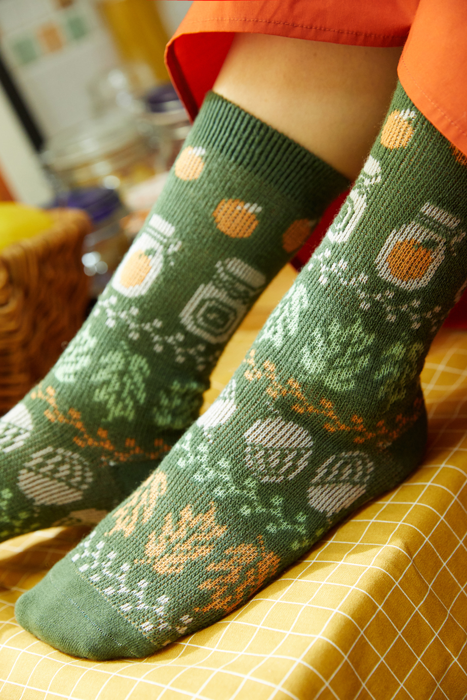 落ち着きのあるカラーと個性的なデザインのジャガードソックスです。 ご自宅で履くのはもちろん、スニーカーも履きやすい程よい生地感で、毎日活躍します。 おしゃれなジャガードソックスをプレゼントしてみてはいかがでしょうか。
