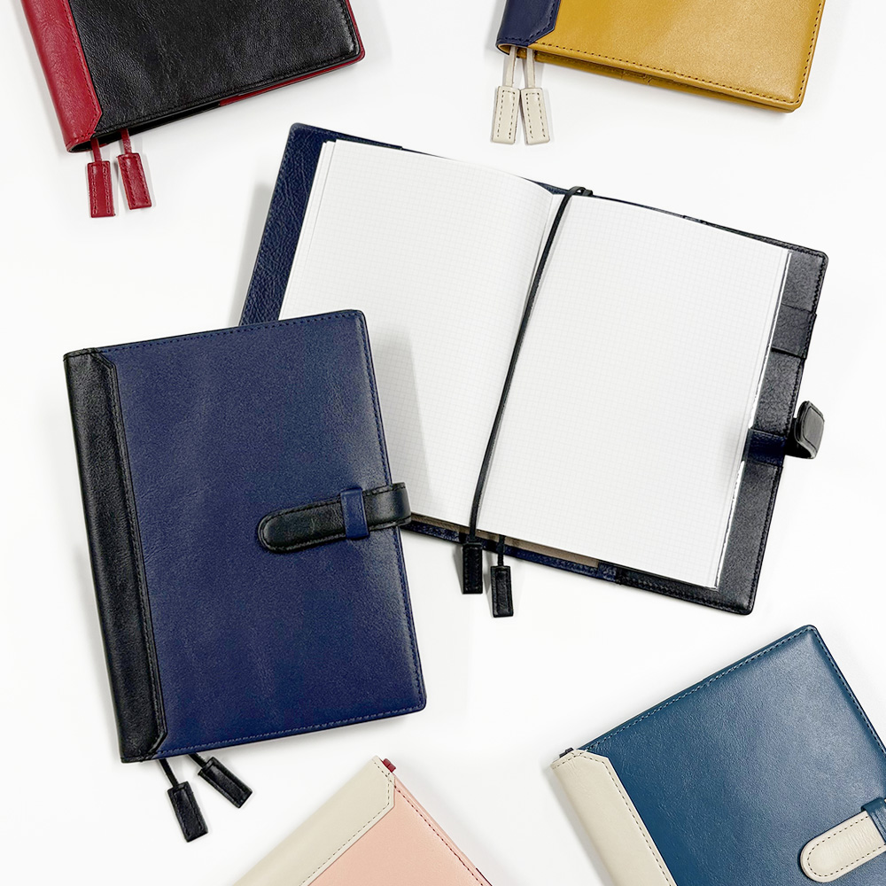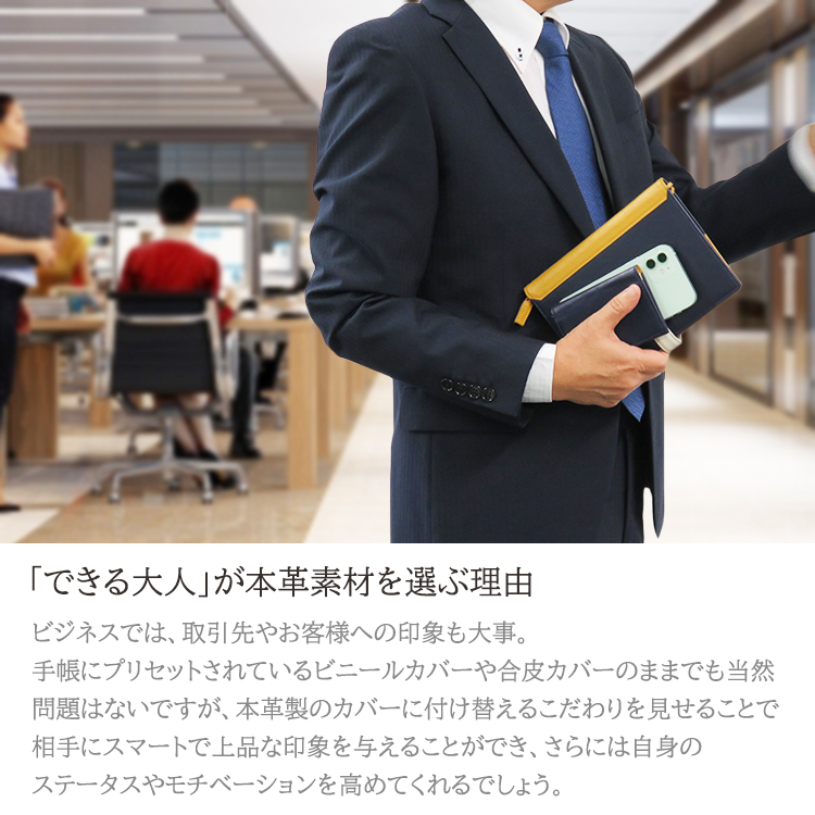 大口注文・法人のお問い合わせはこちらビジネスシーンでも “本革×カラー” で おしゃれを楽しめる B6サイズの手帳カバーになります。 お気に入りの手帳やノートに装着して、重厚な1冊に。 そして、「できる大人」の印象に―――― どんなメーカーの手帳の レイアウト や サイズ がお好みかは人それぞれです。 中身が気に入っていても、元々のカバーの色や素材が気に入らない場合がありますよね。 そんなときにも、着せ替え用のカバーとしておすすめです。