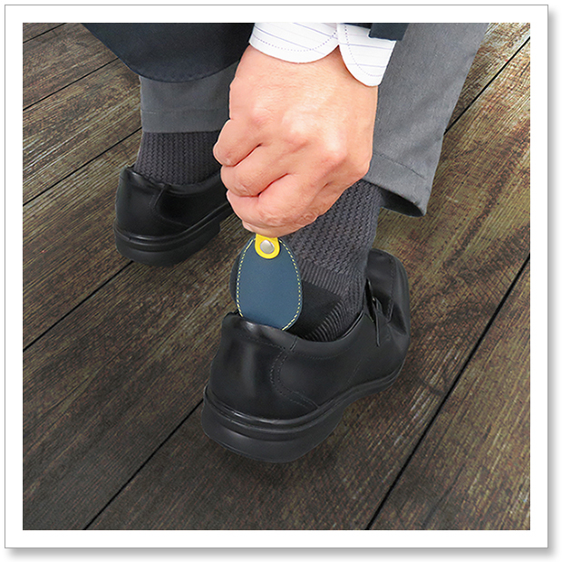 大口注文・法人のお問い合わせはこちらおしゃれが光る大人のスマートアイテム “本革×カラー” シューホーンキーホルダーになります。 ビジネスマンは持っておきたい、外出時に便利なシューホーン(靴べら)。 金属製の芯材を本革で覆っているので高級感があり、しっかりしています。 取引先やお客様の前で、革靴のつま先をコンコン蹴って履いている姿は見せたくないもの。 ポケットからサッと取り出してスッと靴を履けると、スマートでできる大人という印象を見せられます。 普段はキーホルダーとして持ち歩いておけば、いざという時に靴べらとして利用できます。 携帯しやすいよう、大きすぎないサイズ感にこだわりました。