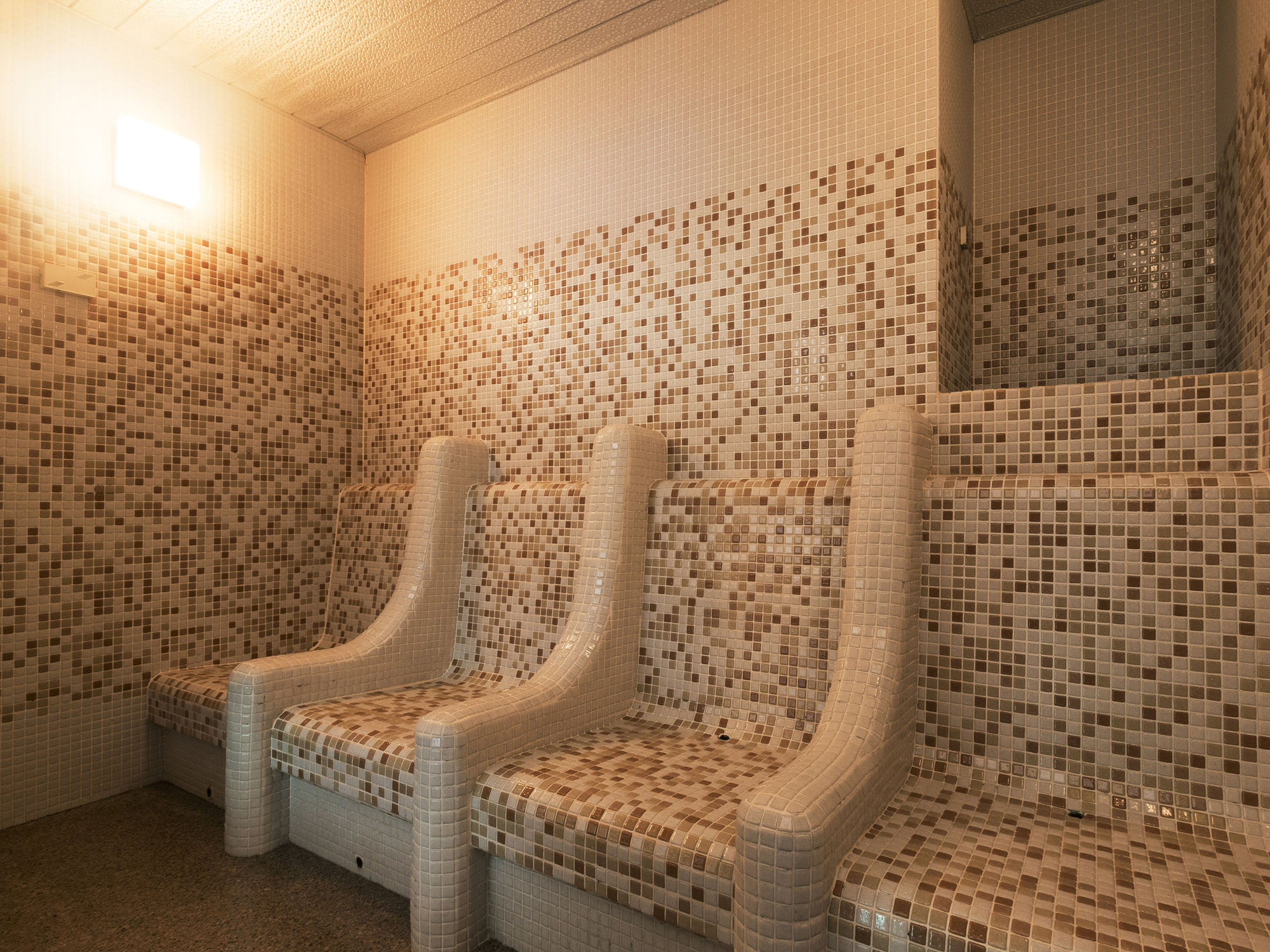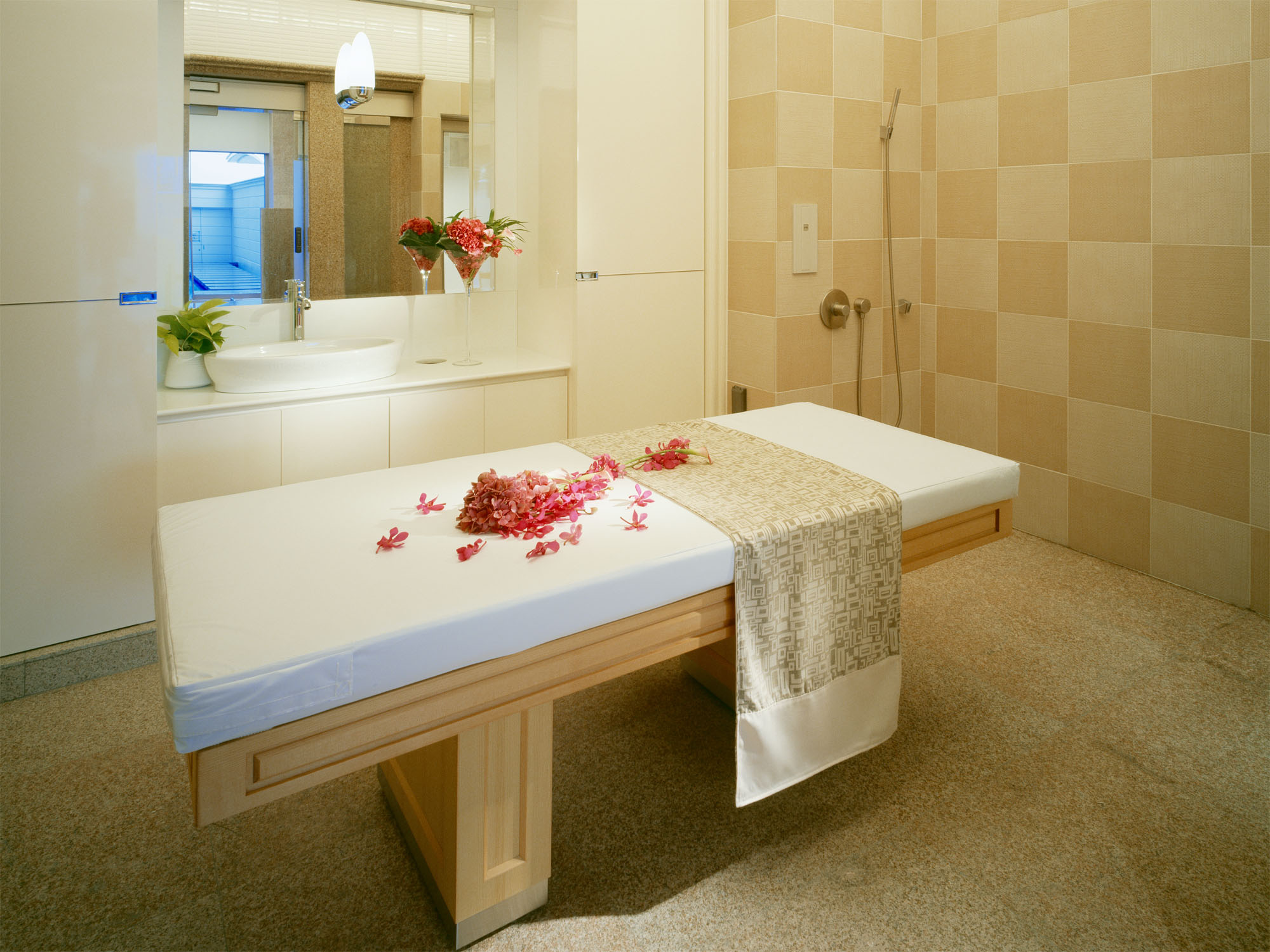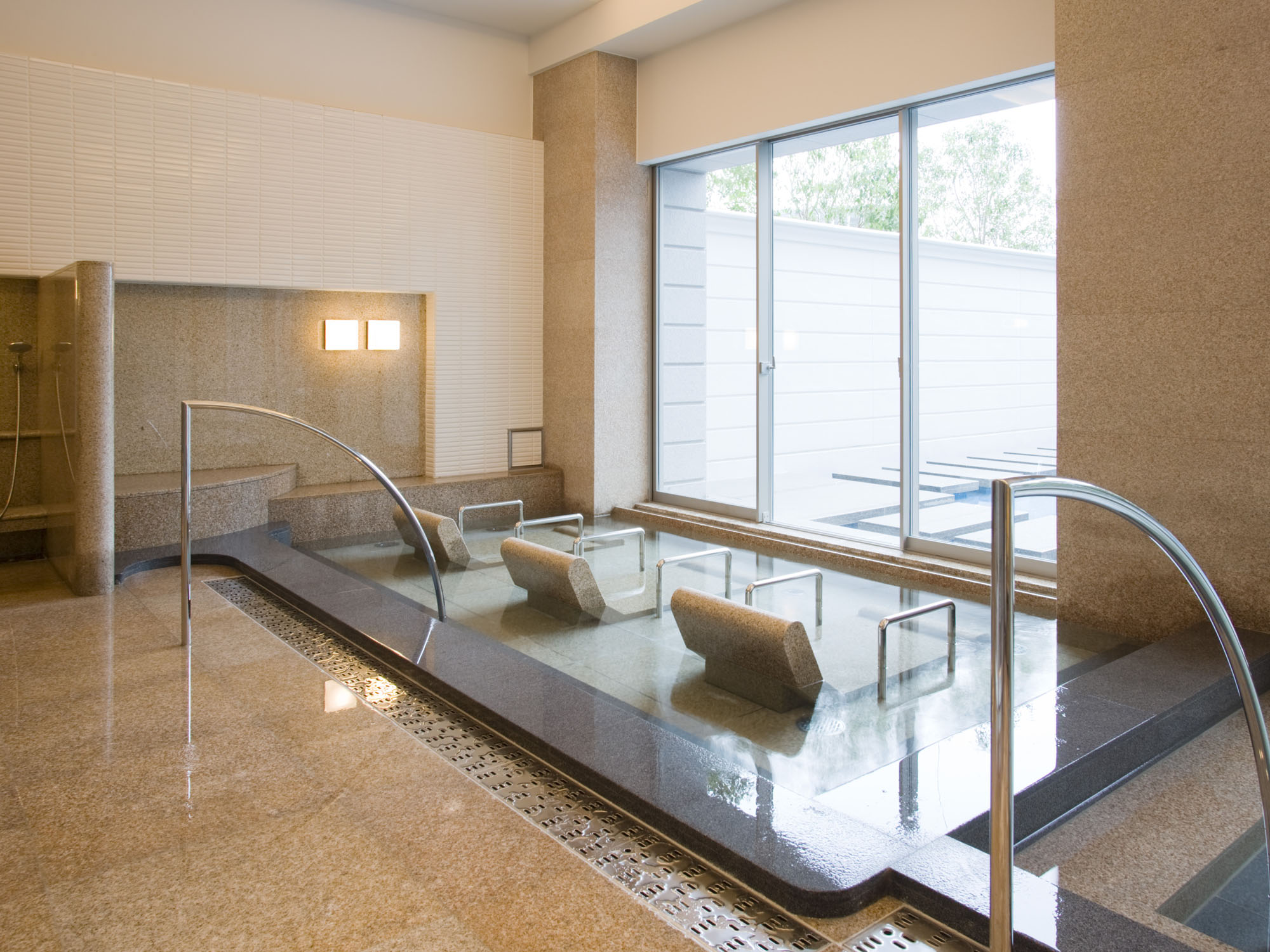 アロマブロアバス、炭酸泉、ナノスチームサウナ、レインミストシャワーのスパ設備をご用意しております。大きな窓からは自然光が降りそそぎ、水盤のある緑あふれる美しいガーデンの景色が広がります。開放感に満ちた空間でリラクゼーションスパをお愉しみいただけます。