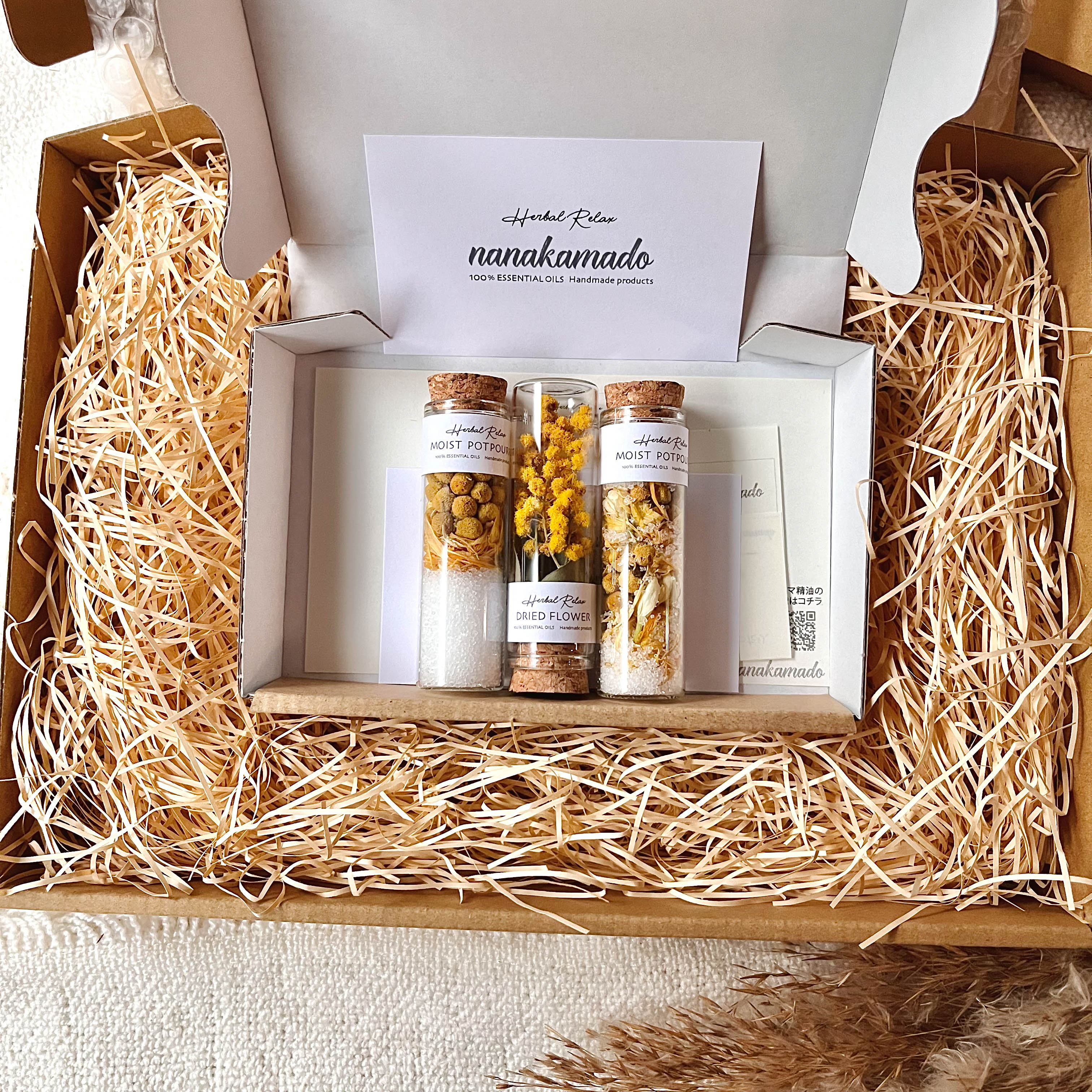 優しい香りで心地よいライフスタイルを提供する【nanakamado(ナナカマド)】の、ポプリとドライフラワーのセットです。