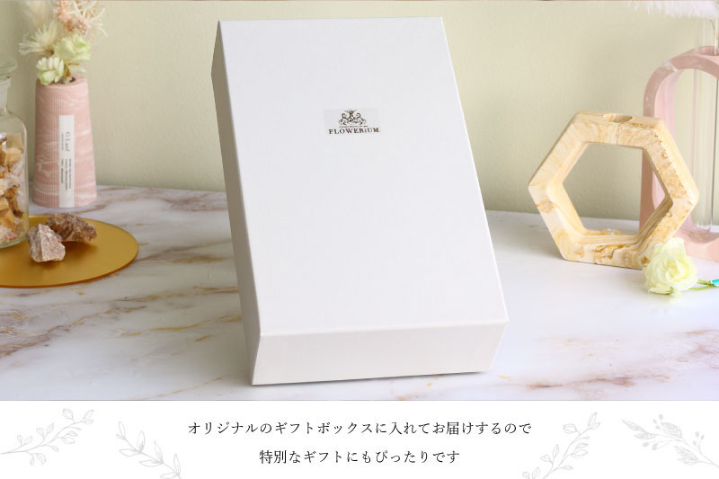 贈り物に大人気の【FLOWERiUM® フラワリウム】とお家時間に癒しをお届けする天然石のフェイスローラーのスペシャルギフトセットになります。 【FLOWERiUM® フラワリウム】に使用されているのは全て本物の花々です。 ひとつひとつ、花を選ぶところから全行程を手作業で作られています。 色や形が異なる季節の花々が使われており、 同じものは二つとない、どれも世界にたった一つだけの作品の為大切な人への特別な贈り物となるはずです。 特殊な技術により3年以上綺麗な状態でお楽しみ頂けます。