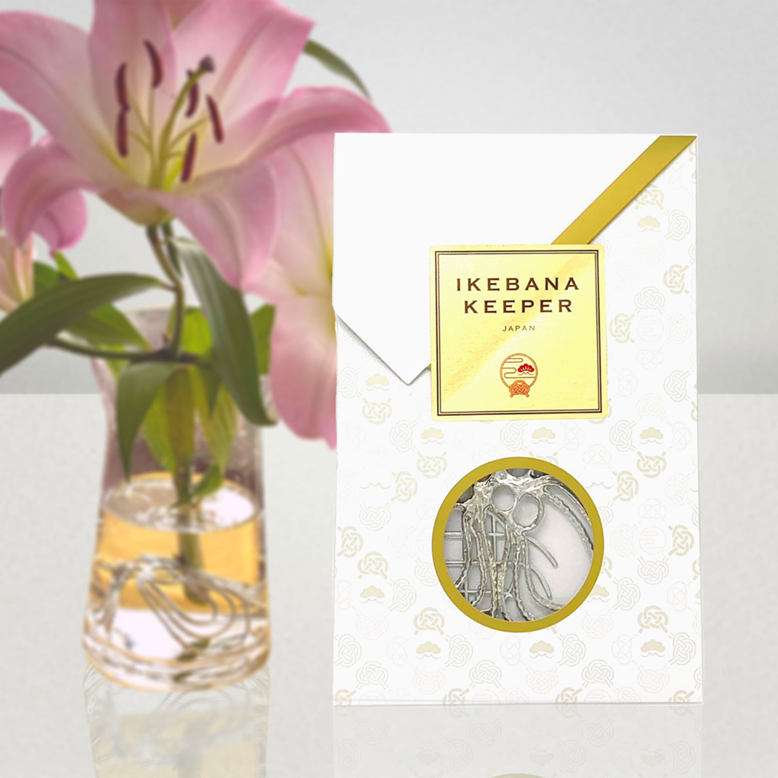 大口注文・法人のお問い合わせはこちらおうちにあるボウルなどを花器にして、簡単にフラワーアレンジが楽しめるグッズです。イケバナキーパーは、生け花で使う「剣山」と同じ役割をします。花器を用意し、イケバナキーパーを好きな形に変えて置き、安定させます。そこに自由にお花の茎を差し込んでいきます。錫(すず)の抗菌効果で花器のお水が腐りにくく、お花が長持ちします。また「剣山」のようにとんがっていないので、お子様でもフラワーアレンジを楽しめます。