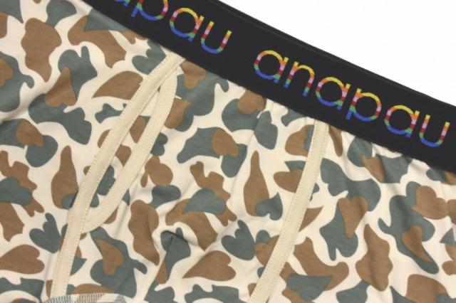 迷彩に色々な種類のハートが潜んでいるオシャレな「ハート迷彩ボクサーパンツ」。全ての製品を日本でこだわって製作している“anapau”のボクサーパンツは、多くの方に愛されているブランドです。伸縮性もある為、ストレスフリーな履き心地です。適度なローライズ加減も万人受けするボクサーパンツです。