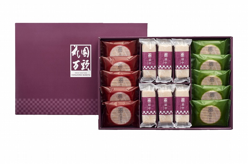 3種類の味をお楽しみいただける「花園最中&煎餅詰合せ」。 ご自宅用にはもちろん、大切な方への贈り物にも大変喜んでいただける、おすすめのギフトセットです。 『いつも頑張っているご自分へのご褒美に、、』 『ご友人やご家族、会社の方へお祝いの贈り物に、、』 「花園万頭」のギフトセットをぜひ、いかがでしょうか。