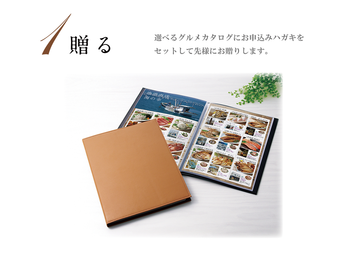 お食事券とグルメカタログの両方の良い点を兼ね備えた ”おもてなしを贈るカタログギフト”、こちらを選んでいただいたお客様から 「グルメを選んだ後にファイルとして使えるのが面白い」 「ファイルが高級感があって、選ぶ時間もレストランにいるみたいで楽しかったと喜んでもらえた」 という嬉しいお声をいただいております。